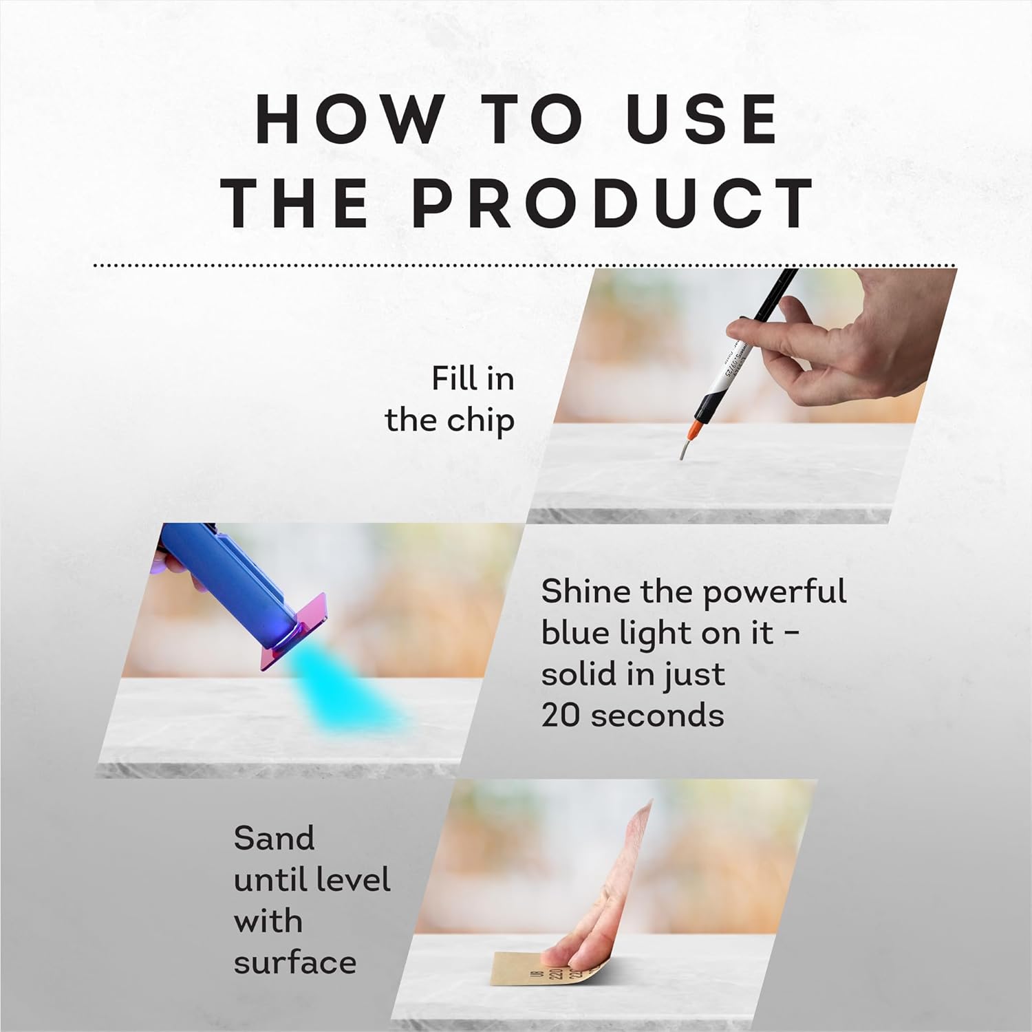 - REFILL FOR THE FASTEST SURFACE REPAIR KIT: The refill includes everything except the blue light unit you already have if you purchased the entire kit before. That means you can continue repairing chips in record time without piling up things you don't need.