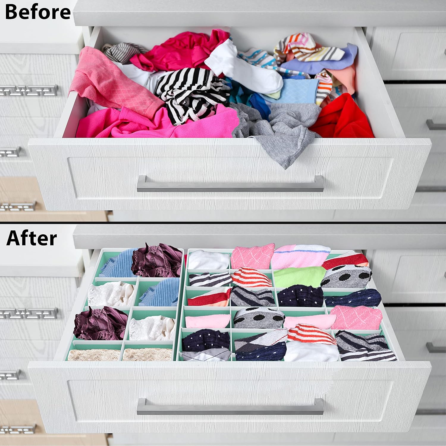 - Declutter Your Drawers - Maximize space in any dresser, closet, or cabinet; ideal for bedrooms, nurseries, and dorm rooms