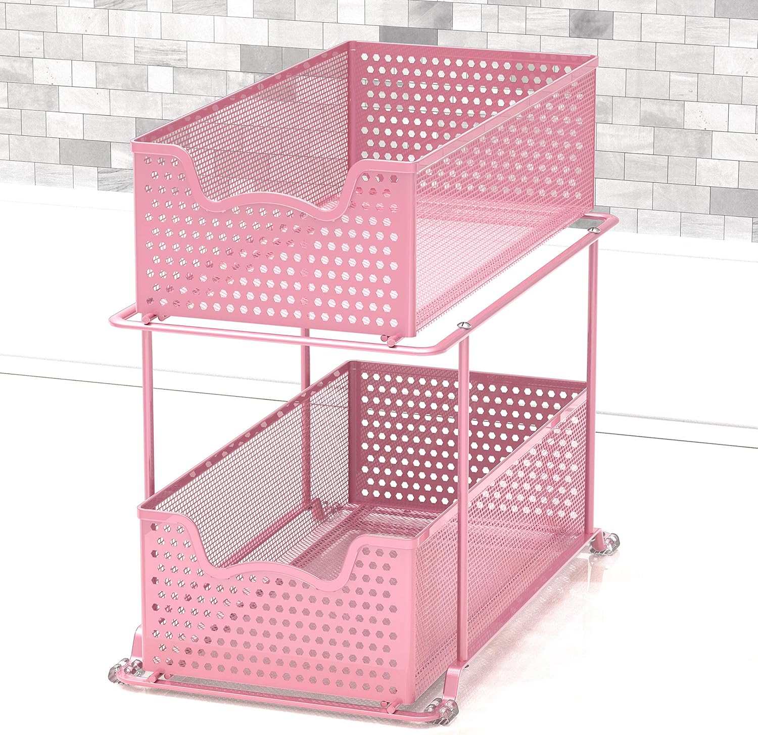 SIMPLE HOUSEWARE 2 Tier Sliding Cabinet Basket Organizer Drawer, Pink