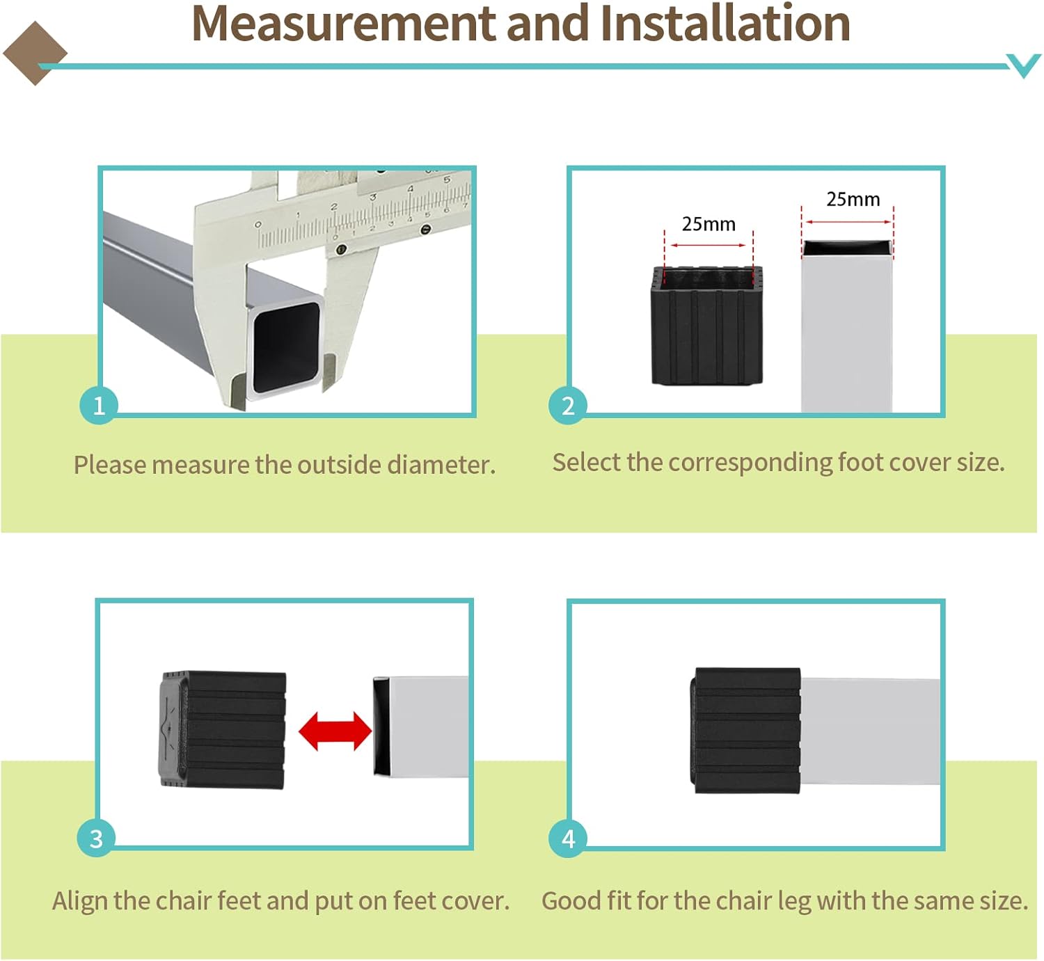 - 【Chair Leg Fitting】: Fit Chair Leg Size : 25 x 25 mm, 1" x 1" (L x W)