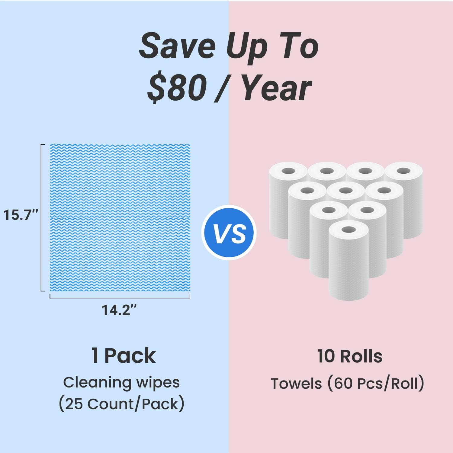 - ECONOMICAL AND ENVIRONMENTAL: Do not waste money on the endless disposable towels, one pack of cleaning wipes (25 Count) is equivalent to 10 rolls of paper towels. Save your money and use less of the environmental resources, making them very economical.