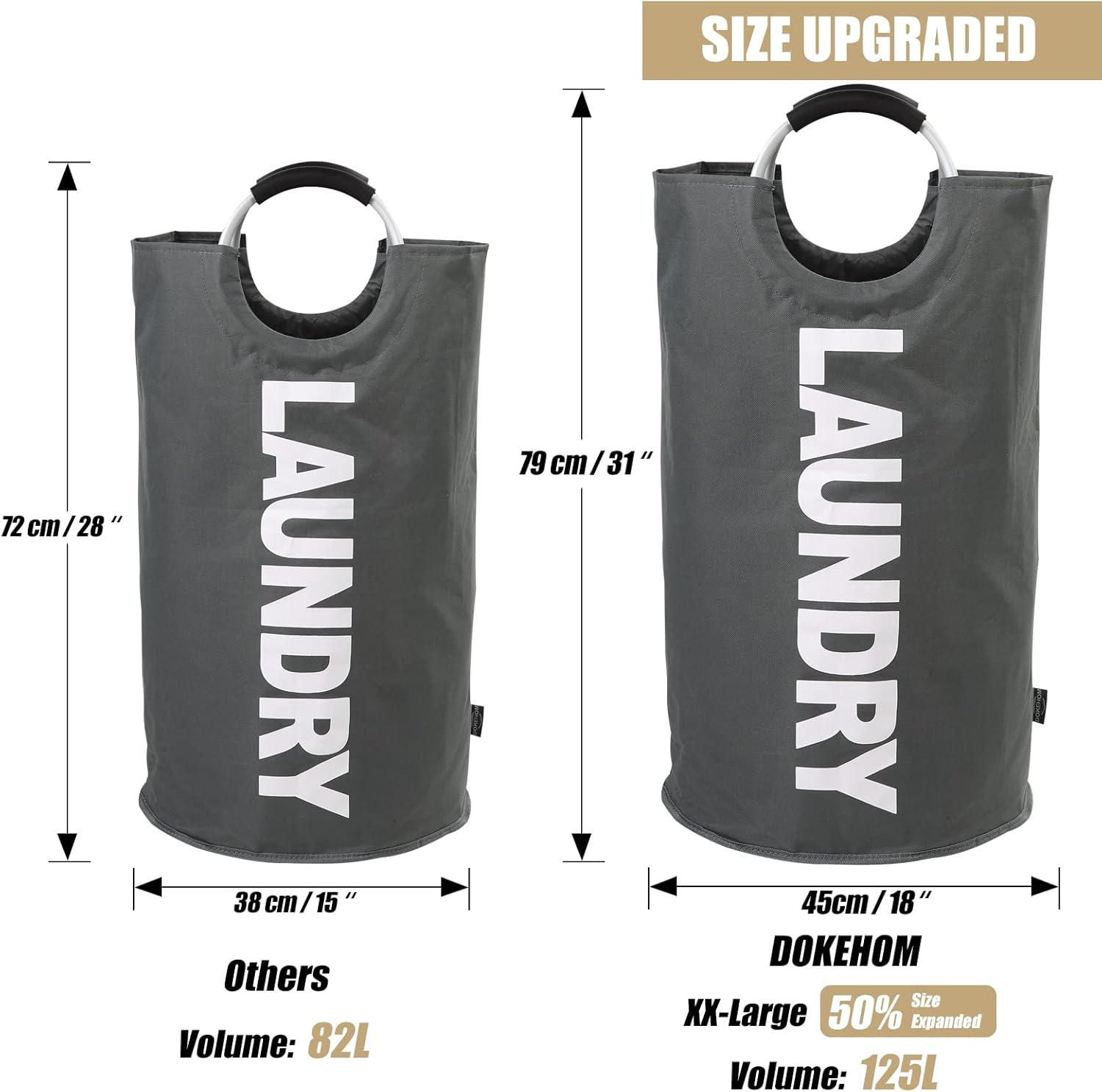 DOKEHOM 125L X-Large Collapsible Washing Laundry Basket Bag (7 Colors) for Bedroom, Fabric (Dark Grey, XL)