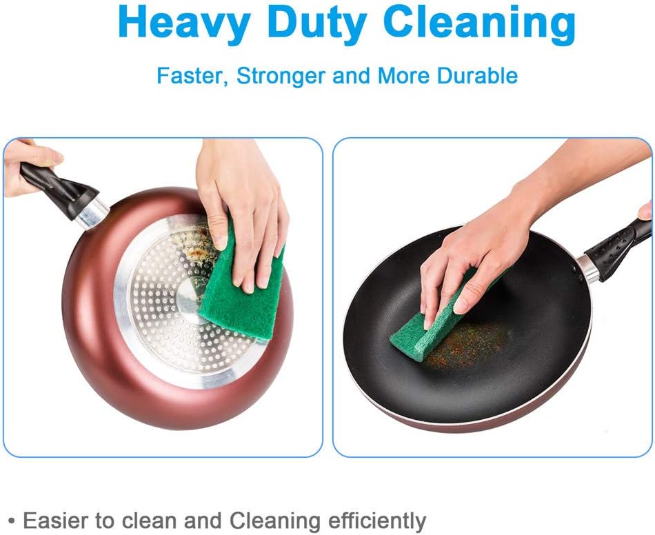 - HEAVY DUTY: Infok scouring pads with tough fibers and abrasives can complete heavy duty cleaning work quickly