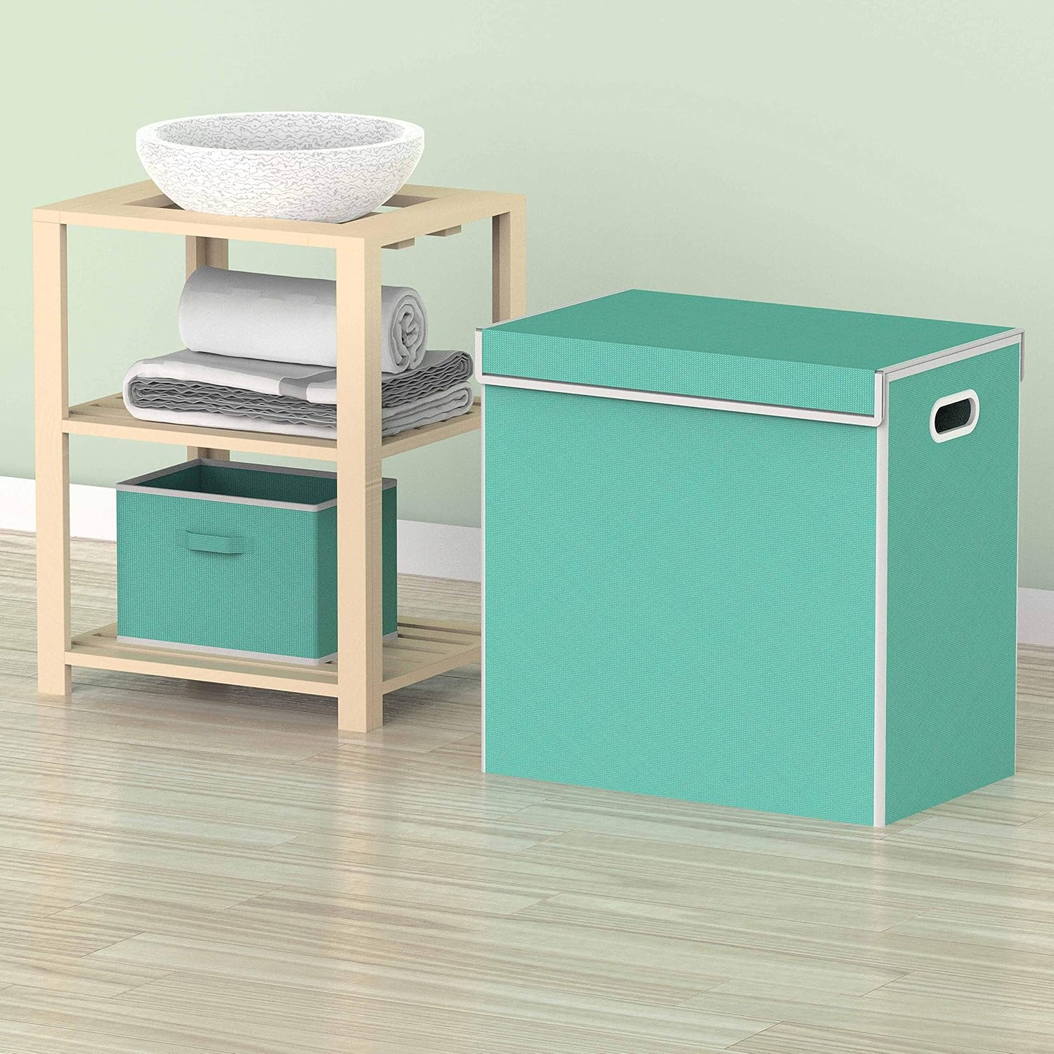Simple Houseware Double Laundry Hamper with Lid and Removable Bags, Turquoise