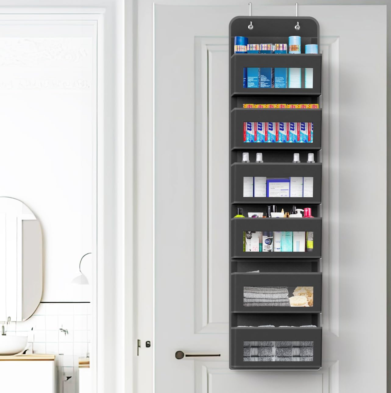 - Declutter Your Space with Additional Storage: Hangs behind standard doors to keep clutter off the floor while still keeping essentials easy to reach and organized