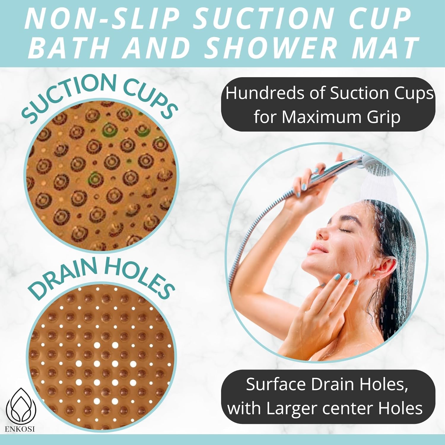 - Great For The Elderly, The Babies & Young Children: Nonslip & generously sized, the Enkosi bath mat ensures the safe bathing & showering of your baby, toddler, as well as your elderly parents or grandparents.