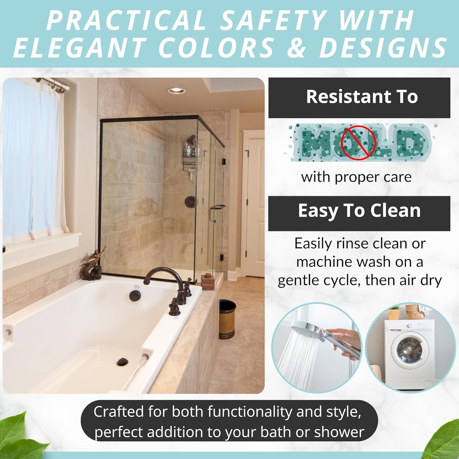- Modern, Sturdy & Made To Last: Complement your stylish bath rugs décor with an eye-catching bath mat in many color variations. Place it in the washing machine, to keep it fresh, clean and hygienic for a long time!