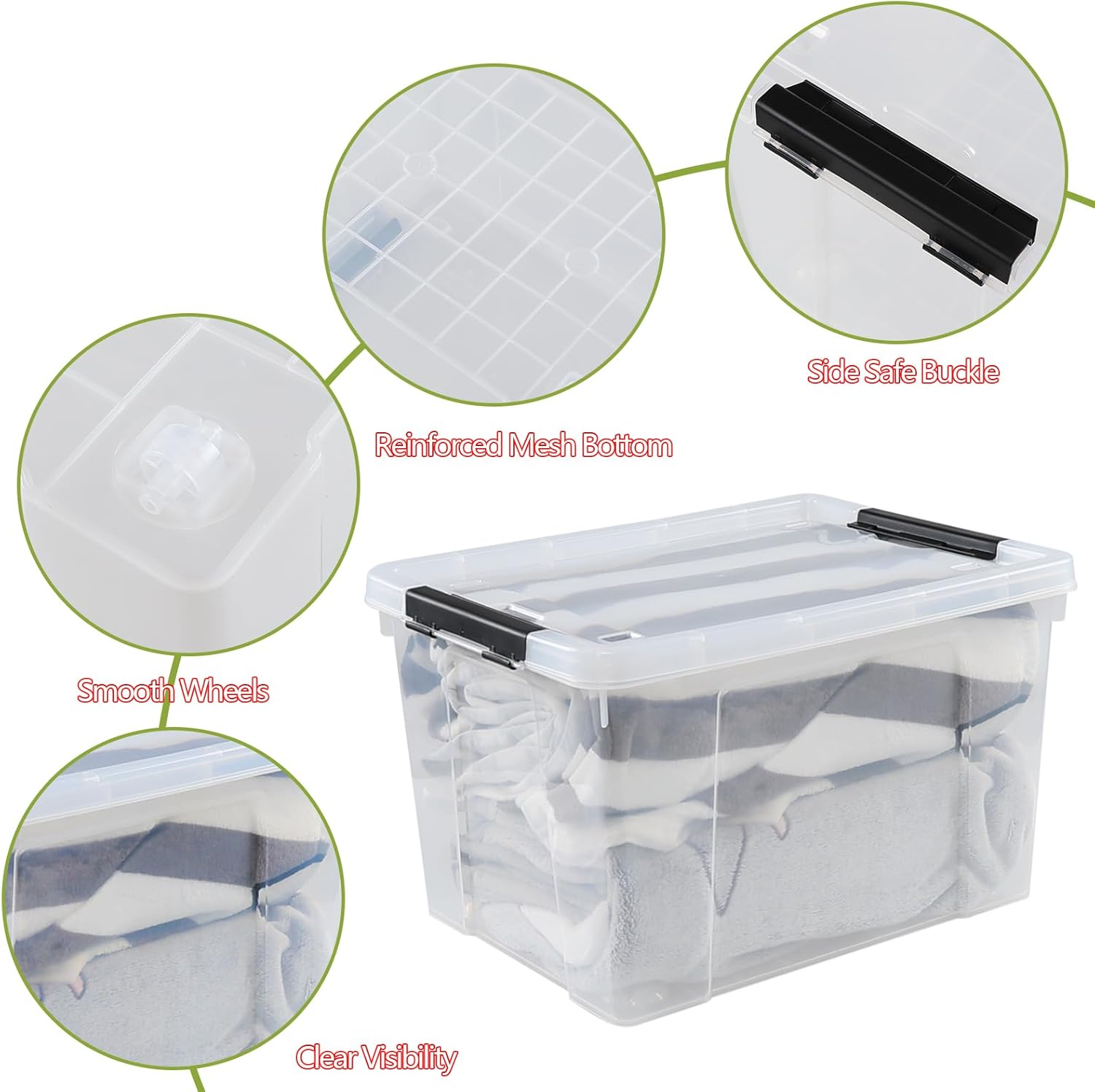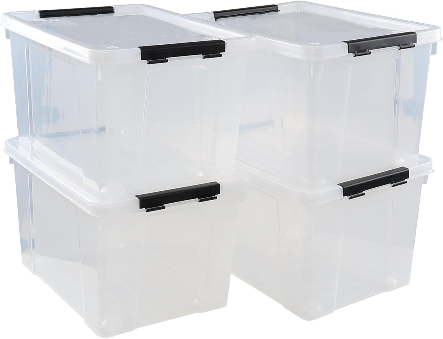 Pekky 34 Quart Clear Storage Bins with Lid, 4 Pack Latching Box Totes