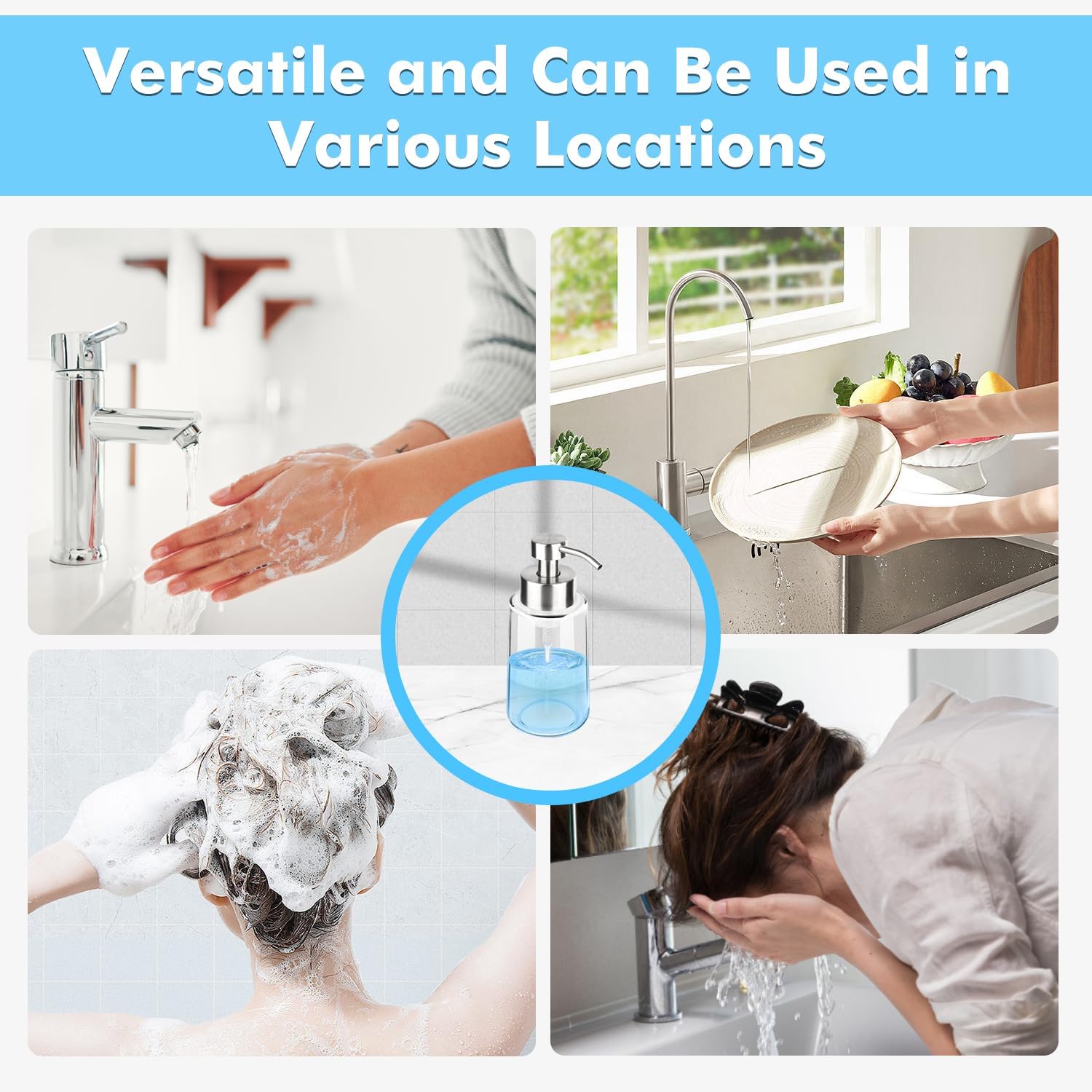 - TRANSPARENT BOTTLE - Our Glass Foaming Soap Dispenser is made of thick, durable glass that is break-resistant. Its transparent bottle allows you to easily monitor the soap level and refill it when needed. The smooth surface of the dispenser ensures that it does not adsorb impurities, making it easy to clean and maintain its sleek appearance