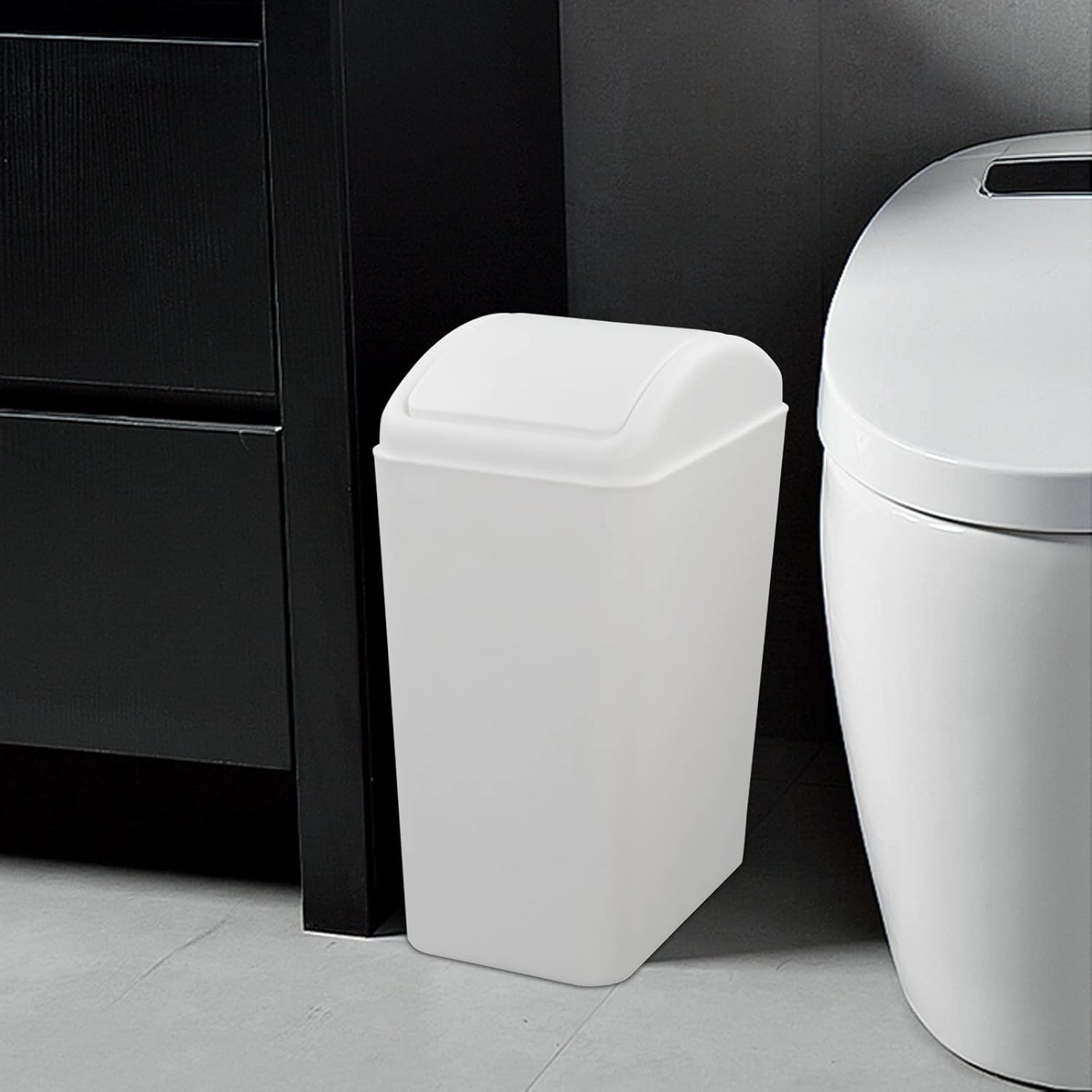 4.2 Gallon Plastic Swing Lid Trash Can, Small Garbage Can with Swing Top Lid, White