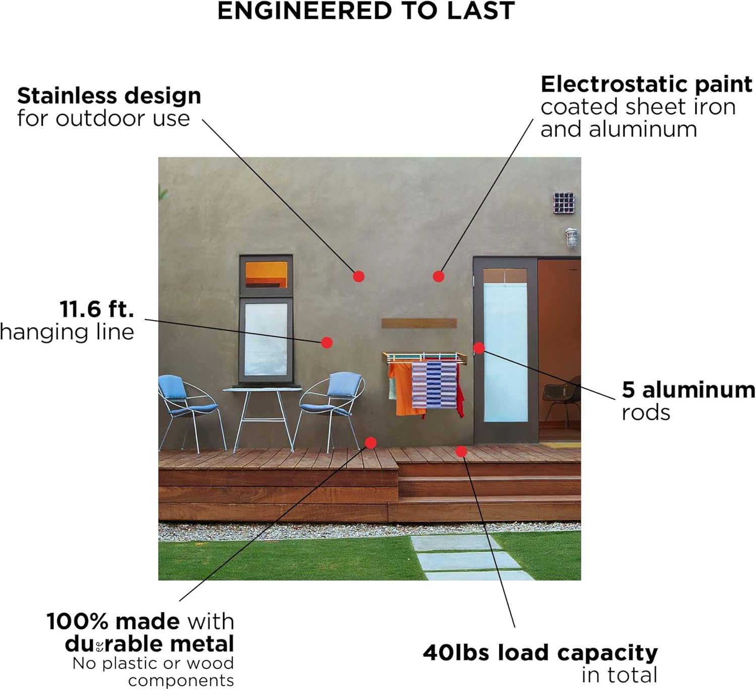 - INDOOR & OUTDOOR: Stainless steel and aluminum components make it perfect for patios, balconies, RVs as well as laundry rooms, bathrooms, hotel and dorm rooms.