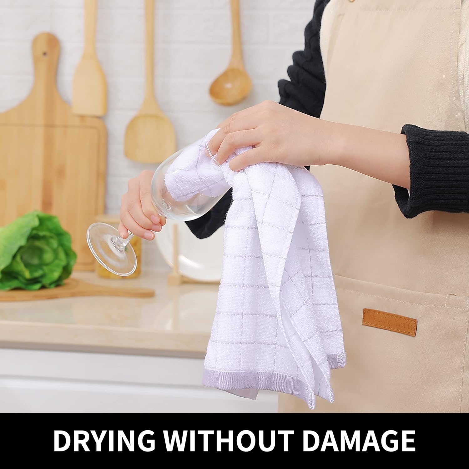 Homaxy 100% Cotton Terry Kitchen Towels(White, 13 x 28 inches), Checkered Designed, Soft and Super Absorbent Dish Towels, 4 Pack