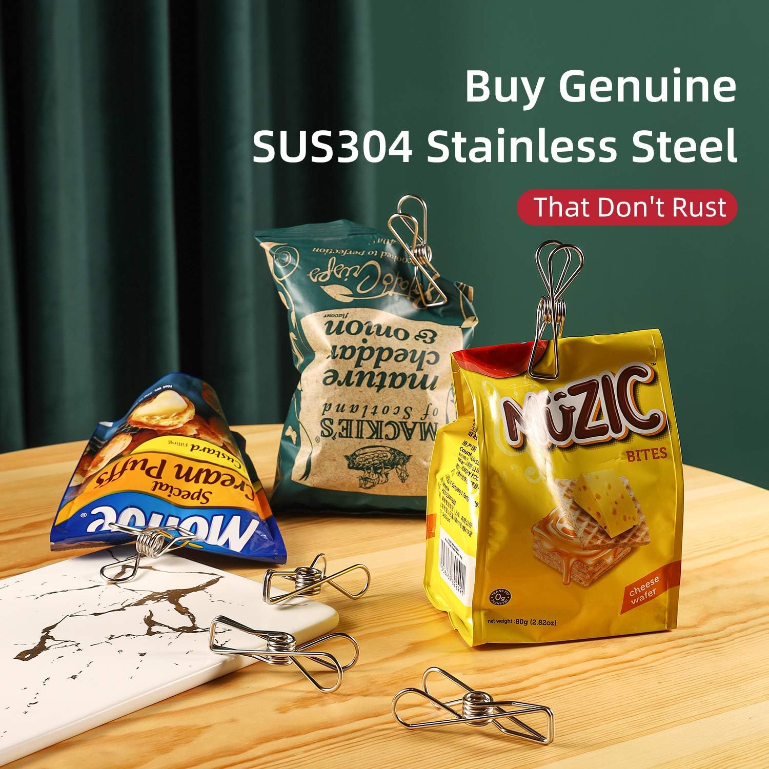 - [❤️Multi-Purpose]:Our metal clothes pins can be used for an outdoor clothesline, crafts, laundry, snack baggie sealing, room decoration, kitchen, industrial, picture hanger, home, and kitchen, food freezer storage, snack bag, paper files clips, and easy to take when you travel.