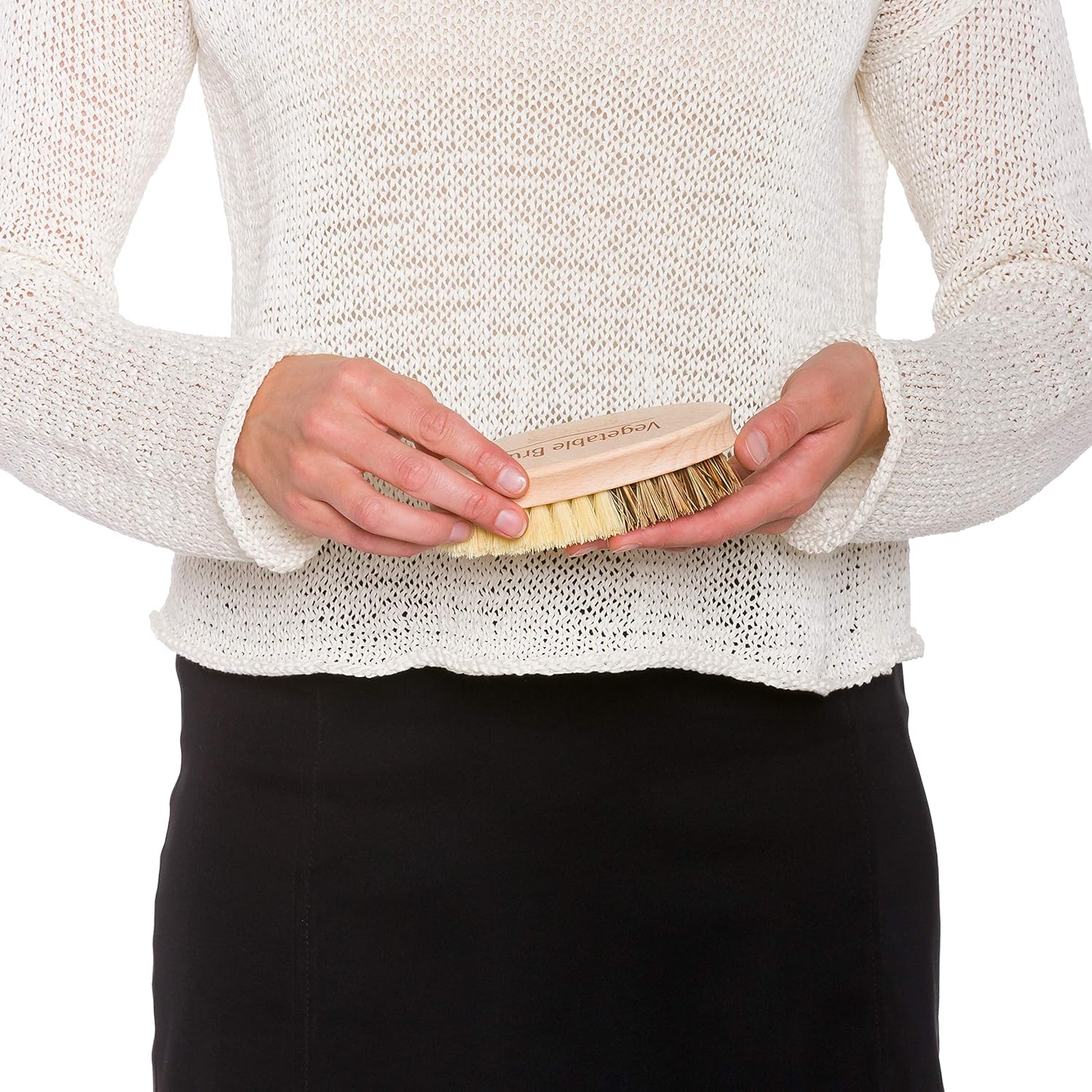 - Efficient Vegetable Cleaning: This wooden vegetable brush is ideal for gently and thoroughly cleaning almost all kinds of vegetables and root crops without bruising, scraping, or damaging foods; efficiently scrubs dirt from potatoes, carrots, radishes, cucumbers, zucchinis, tomatoes, and more; Brush made in Germany