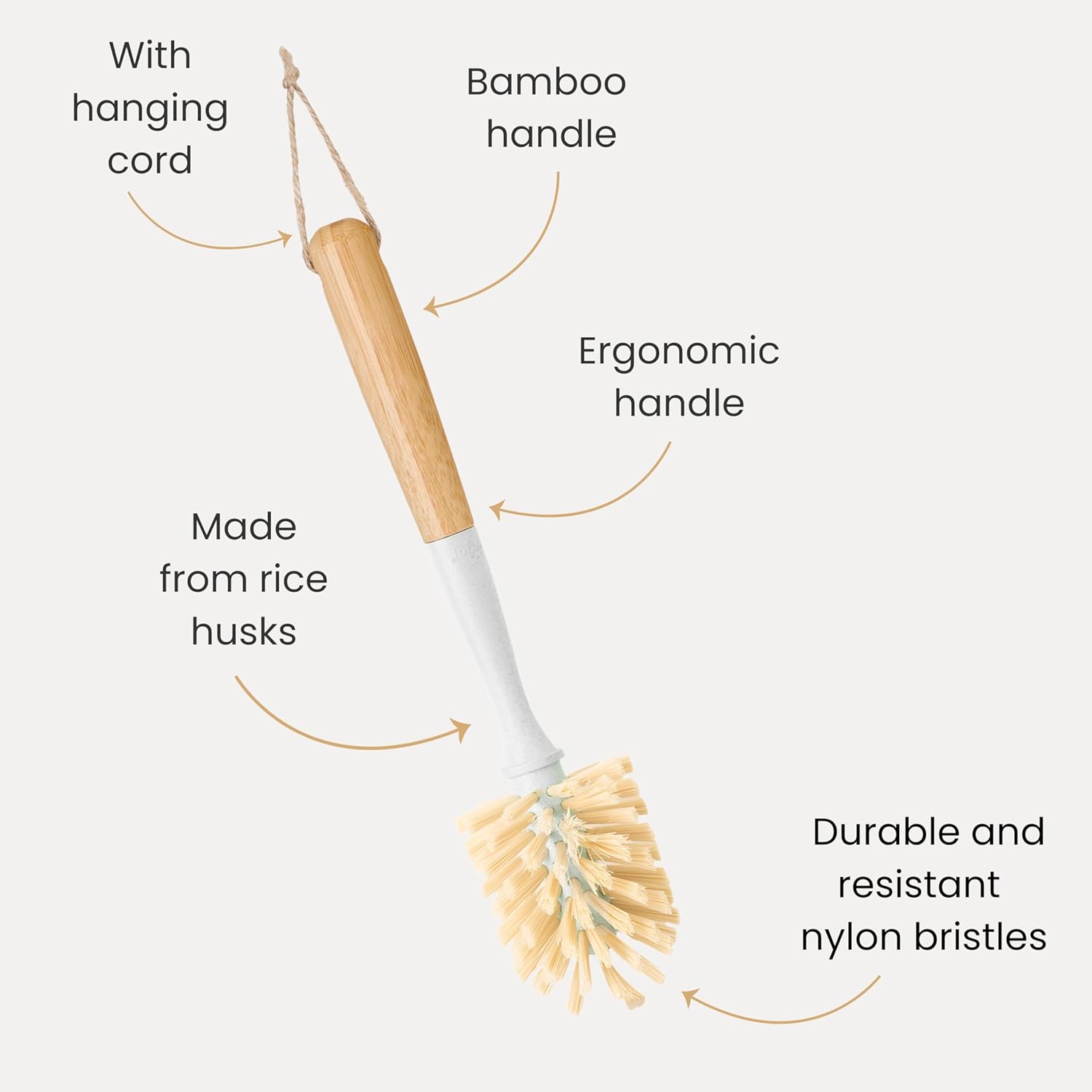 - Durable Kitchen Brush: This dish brush, made from rice husk fiber and bamboo, offers durability for everyday cleaning. It’s a reusable alternative to disposable sponges, with soft bristles that clean delicate glass surfaces gently without scratching.