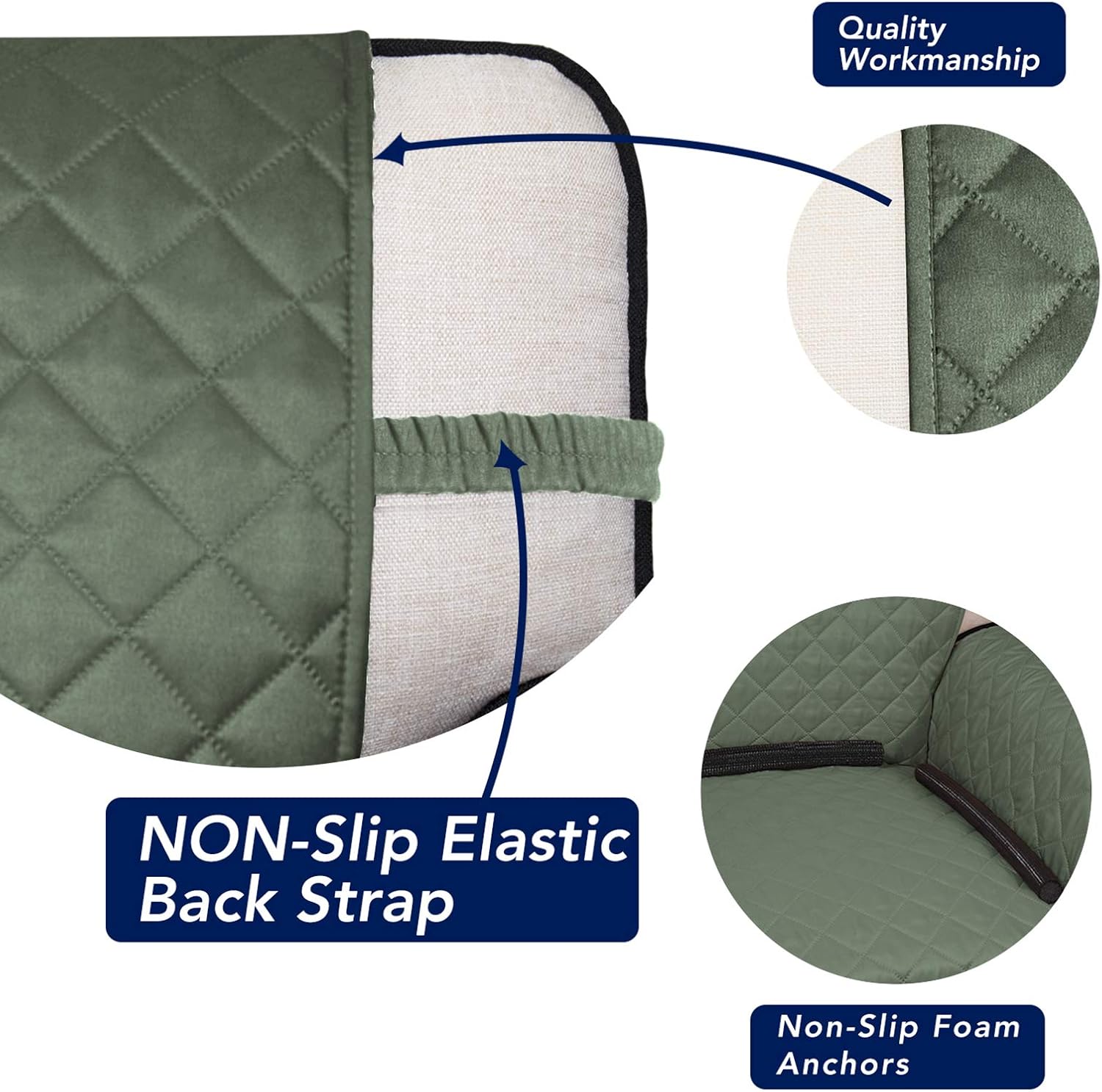 - The reversible sofa cover that stays in place: Our sofa couch cover for dogs and pets features a reversible design (dual color) . Our non-slip sofa furniture slip covers also feature non slip foam anchors and Feature elastic straps to ensure they will keep in place.