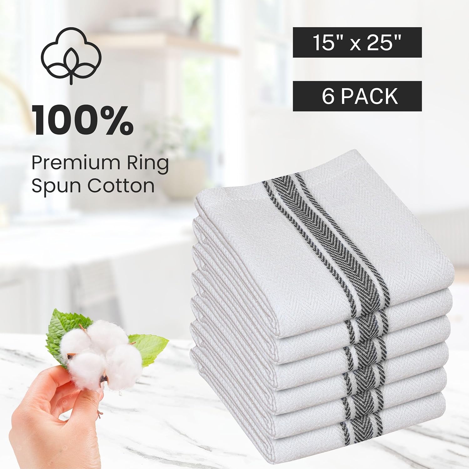 - Premium 100% Ring Spun Cotton: Crafted with soft and durable 100% ring spun cotton, these kitchen towels deliver exceptional absorbency and strength for daily kitchen tasks.