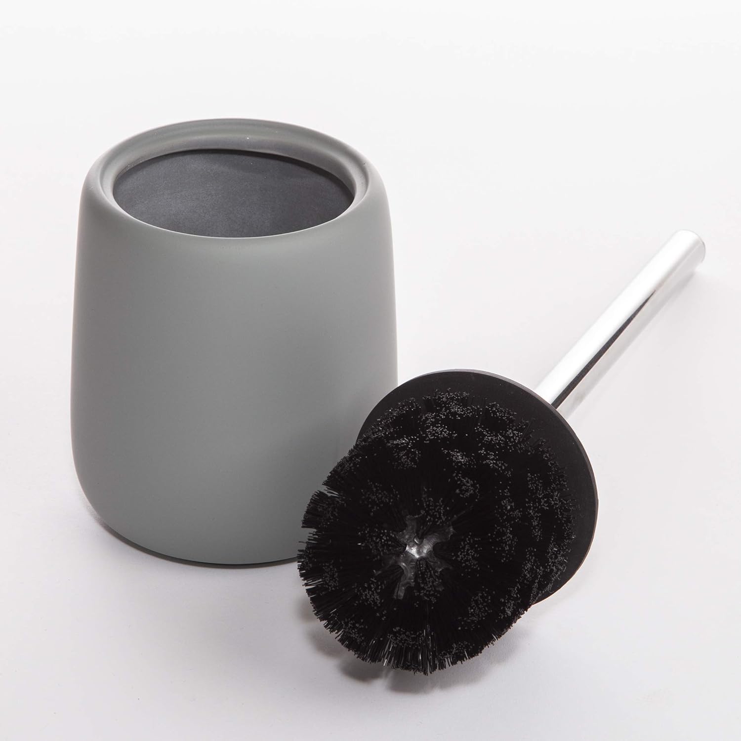 BINO Toilet Brush with Holder - Silicone Coated Ceramic, Light Grey - Bowl Cleaner