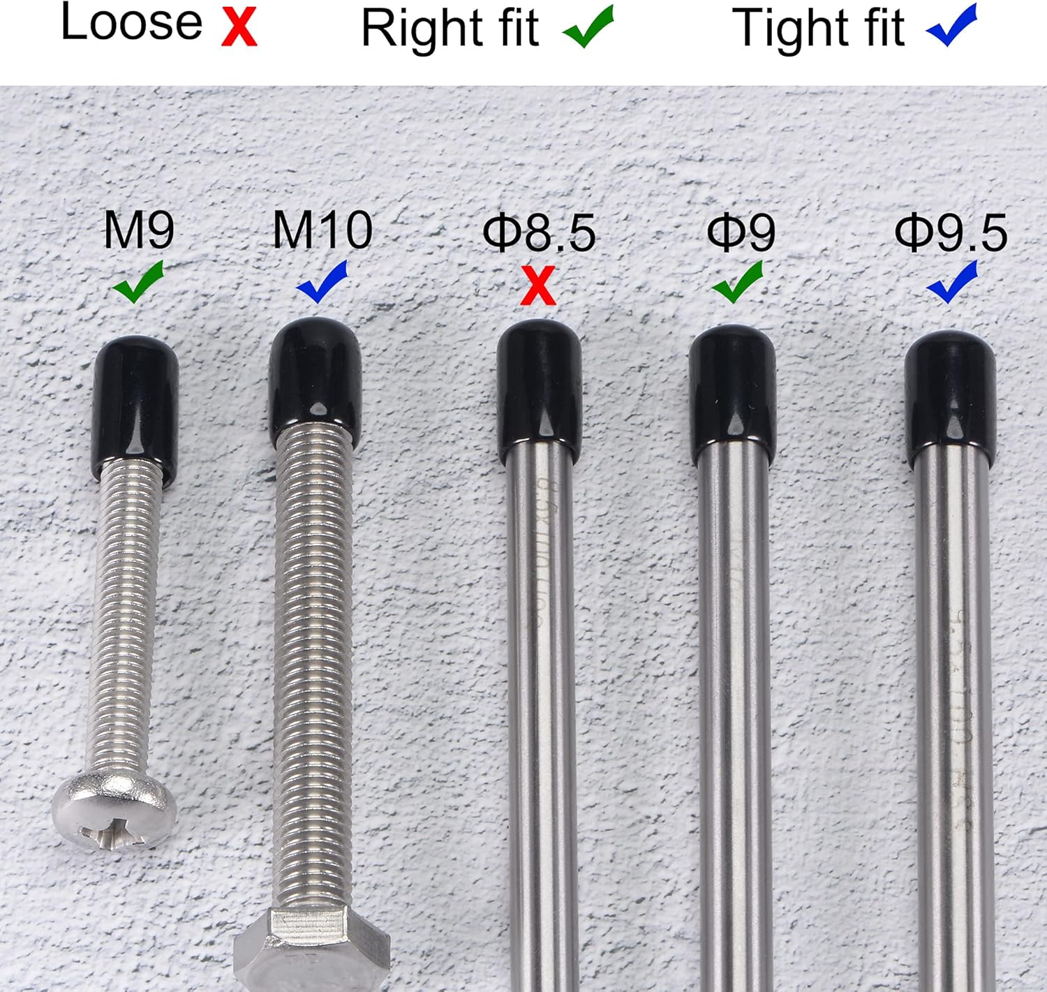 - 【Size Selection】Because rubber material is soft and elastic, we recommend choosing rubber end cap that is slightly smaller than the outer diameter of the product to be protected. For example: the outer diameter of your product is 9.8mm dia, choose the rubber cover of 9.5mm!