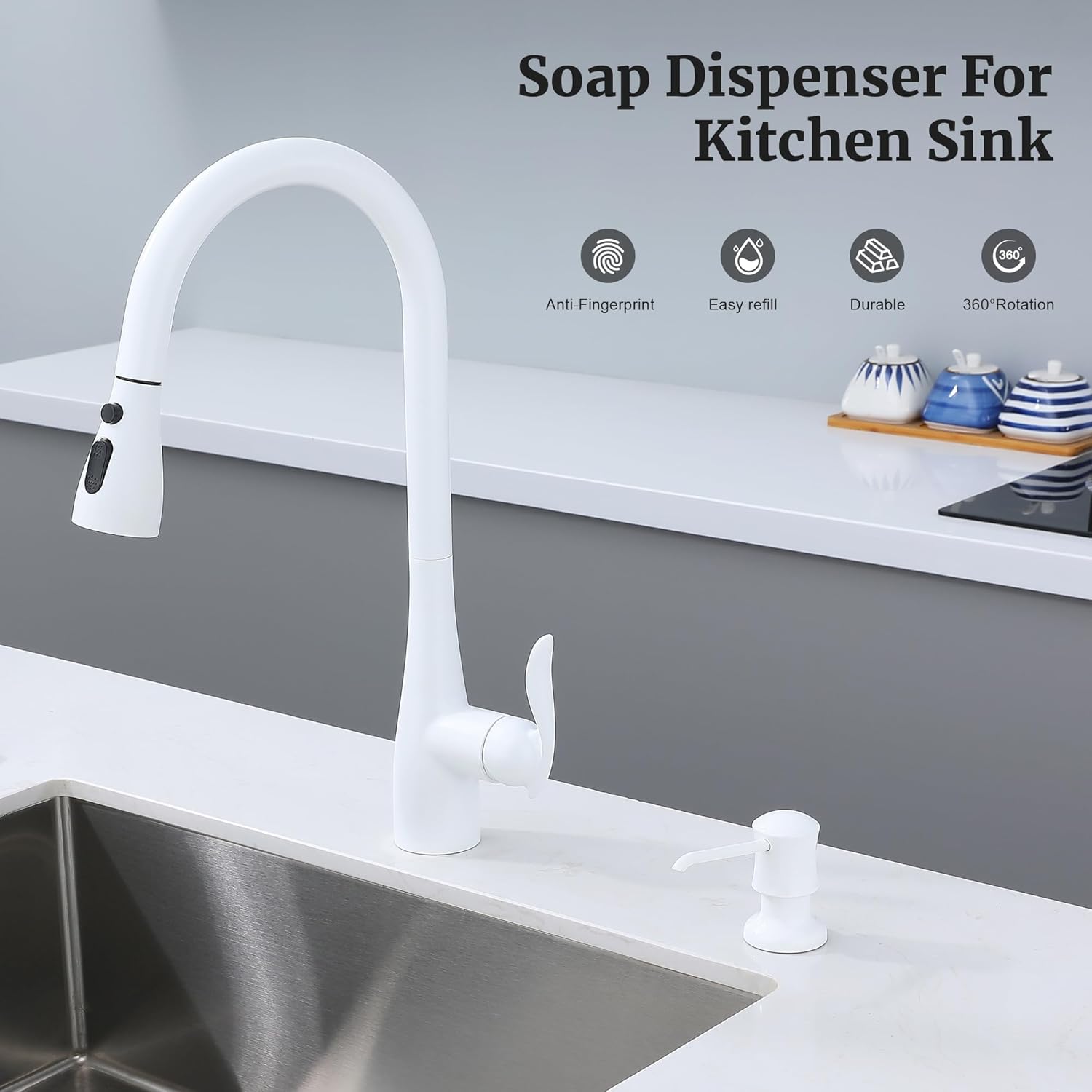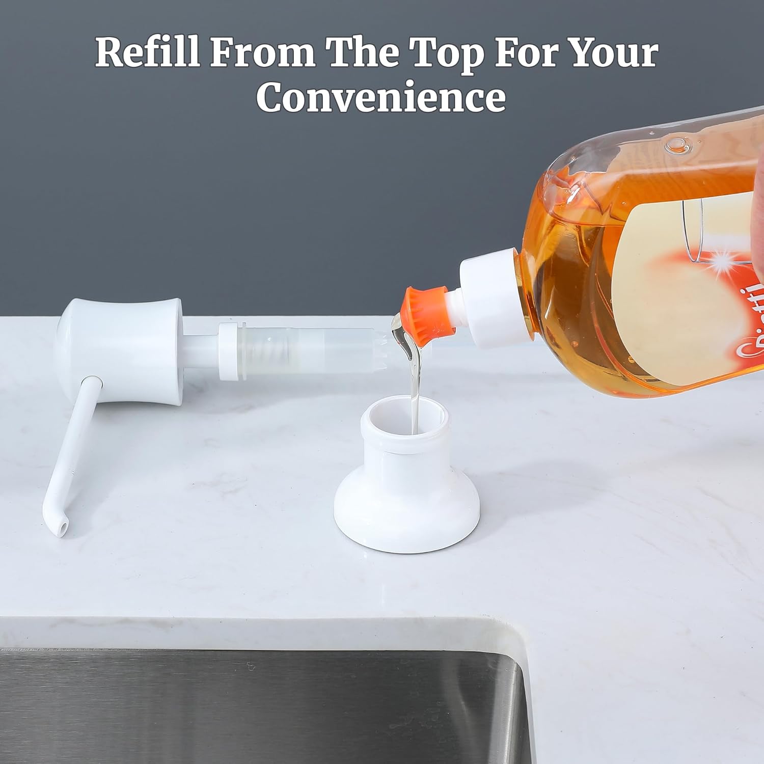 White Sink Soap Dispenser for Kitchen Sink (White), Built-in and Refill-from-Top Design with Liquid Hand & Dish Soap Bottle