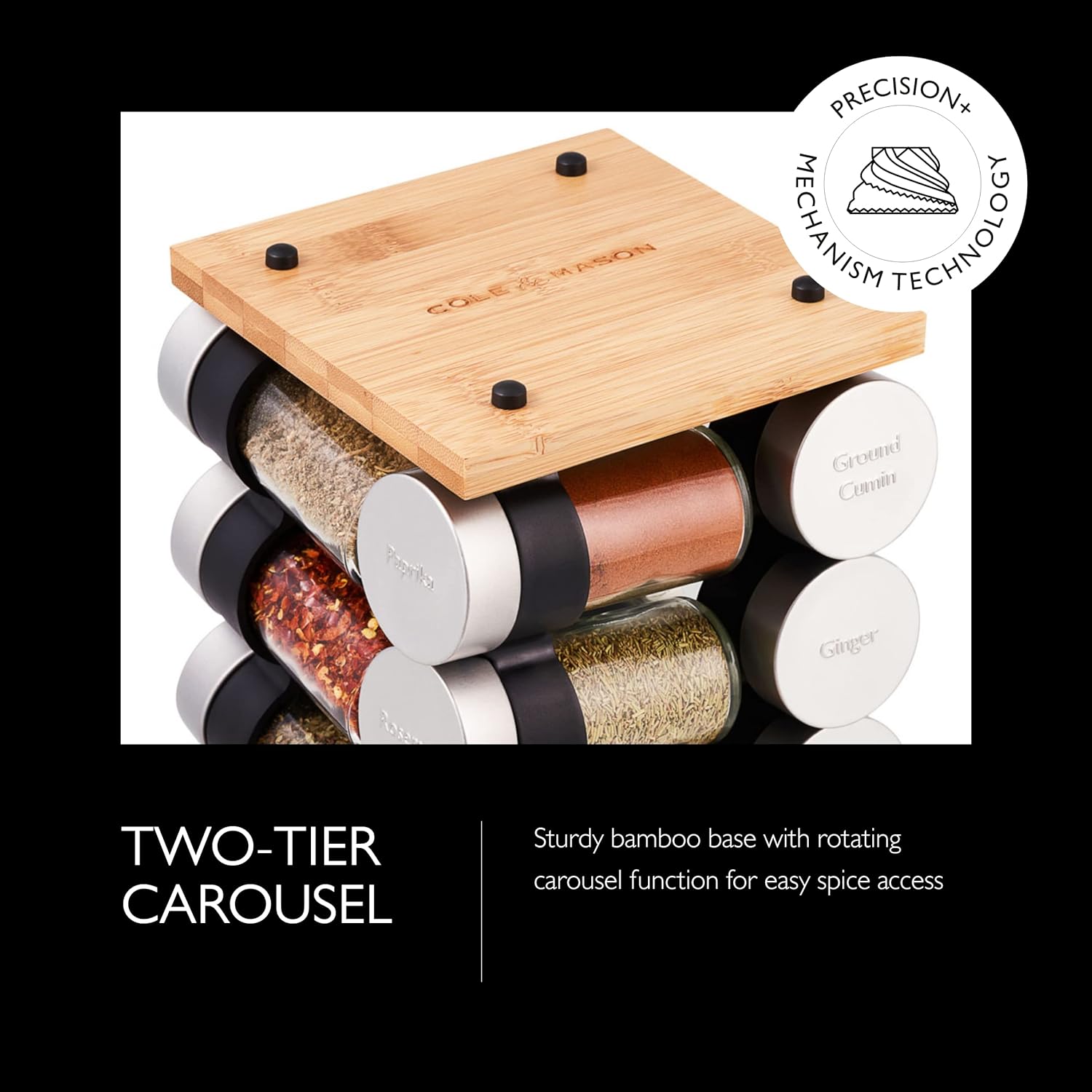 Cole & Mason Blyth Spice Rack Carousel, 16 Jar, Bamboo