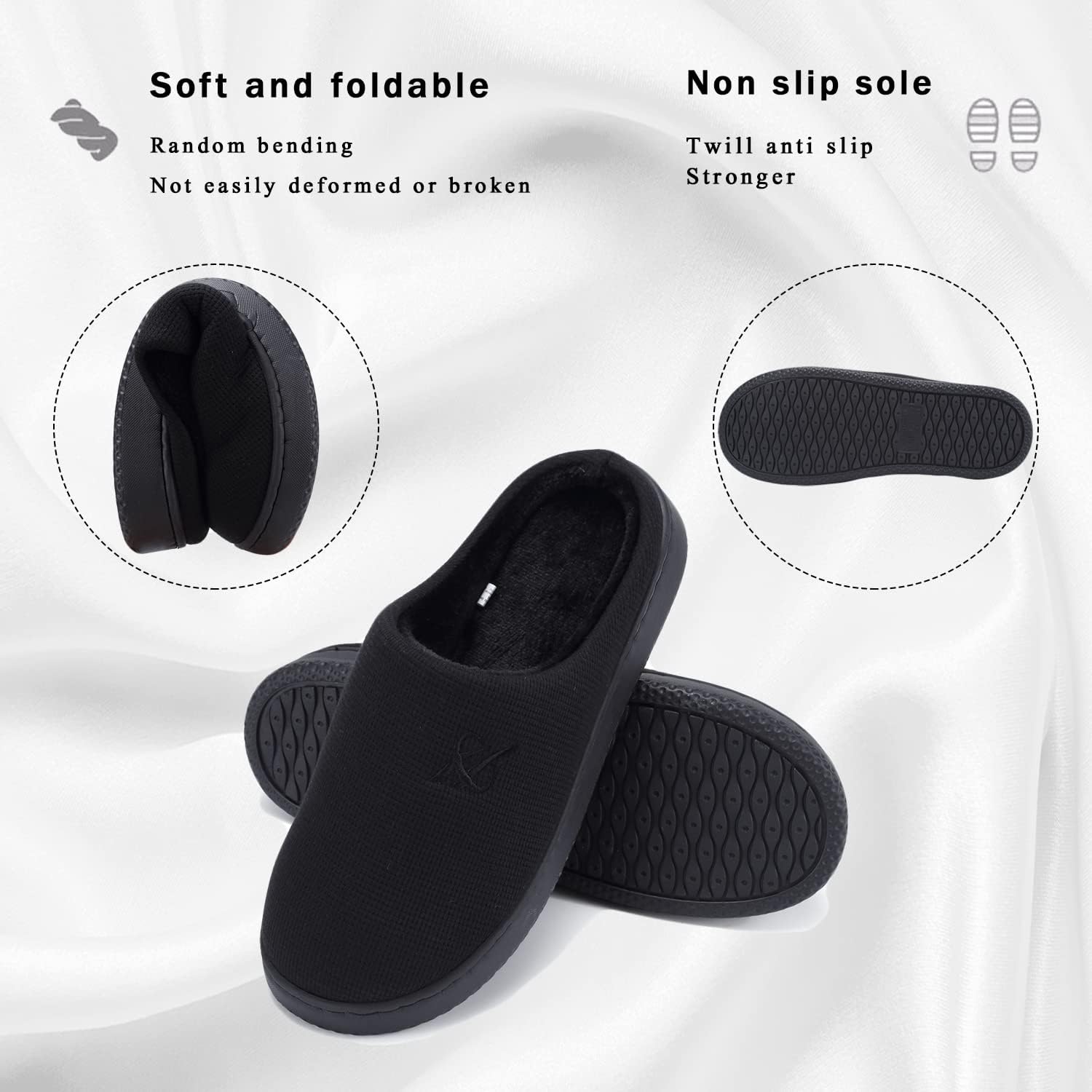 • Upper: This slippers uses high-quality fabric upper, combined with waffle woven surface design, has excellent breathability, moisture wicking function, and keep your feet dry and odorless