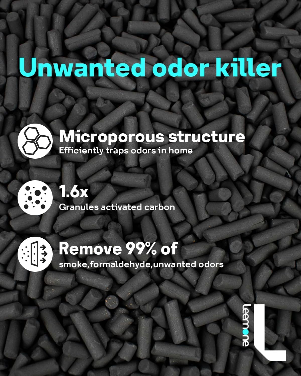 - 3-STAGE FILTRATION: Pre-filter traps hair, pet fur and lint. Advanced activated carbon filter absorbs pet, cooking, and smoke odors. H13 True HEPA filter captures pollen, dust and pet dander. The carbon particles in our product are made from FSC-certified charcoal powder