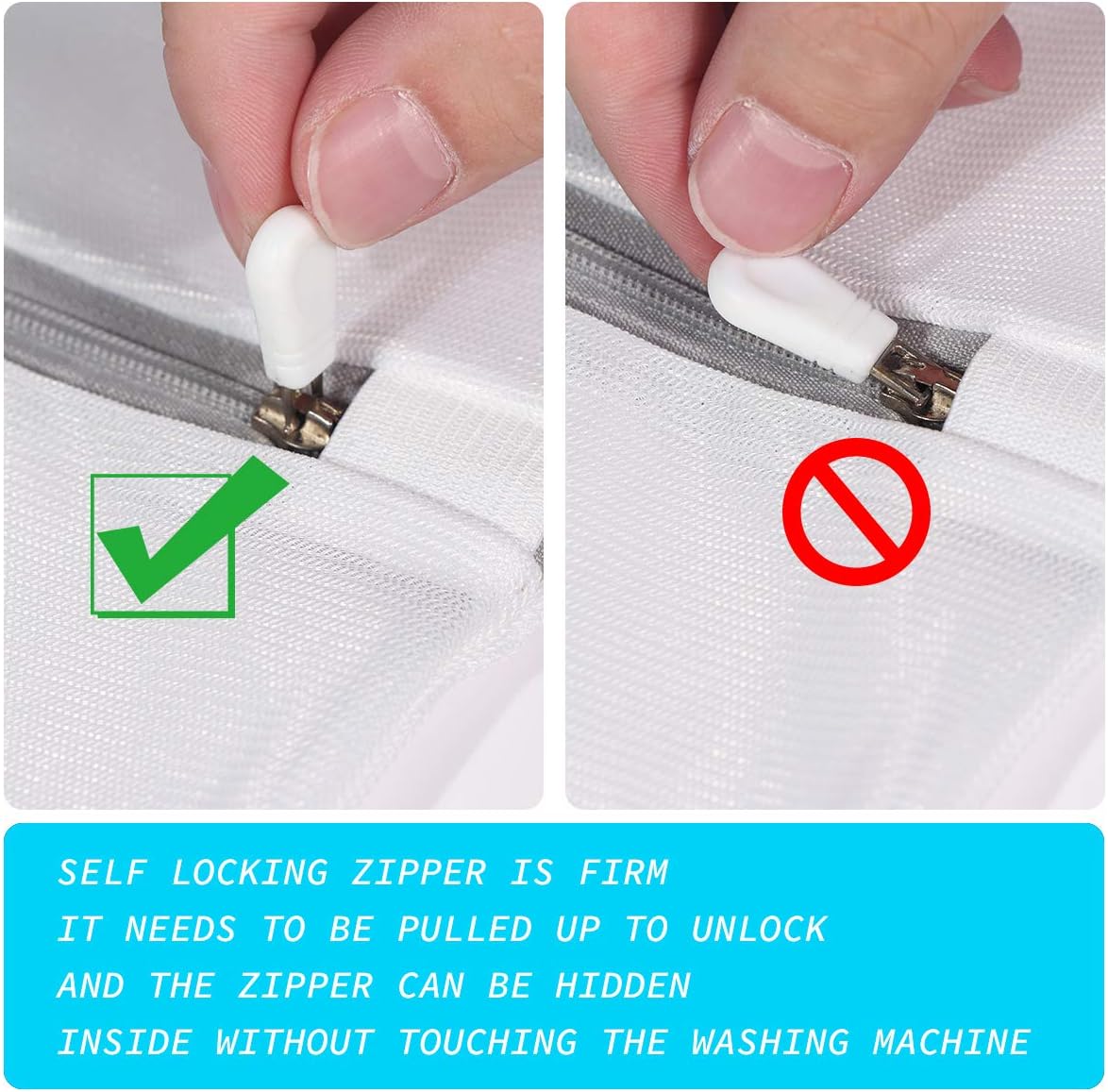 - 【Auto-lock Zipper,Anti-cracking】: This big zipper mesh laundry bag has a high quality rust-proof zipper with a safe side cover,it is aoto-locked zipper can prevent the delicate clothes wash bag opening when it running,and the safe side cover can protect your washing machine,avoid zipper scratch the machine and also extend the service life of zipper.