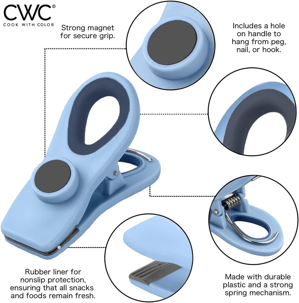 - Bag clips are one of those things you never have enough, invest in a set of durable, long lasting, soft touch, kid friendly Cook with Color food bag clips and organize your home and office with a colorful set of bag clips