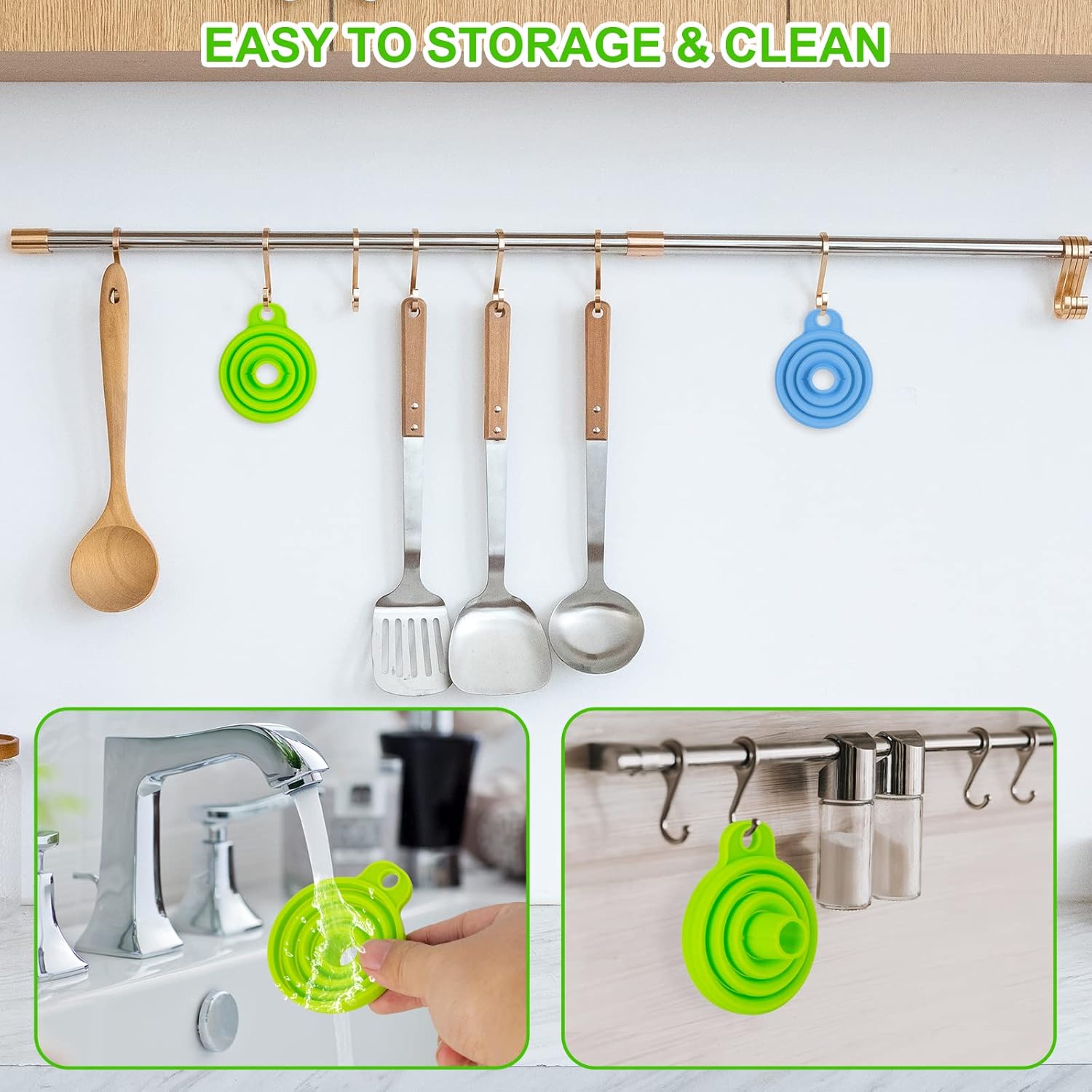 - 【Easy To Clean And Store】This small funnel set are ultra easy to keep clean even from oil, simple wash with warm water and add little soap or put it in the dishwasher, and let the machine make the job for you. Easy to store by hanging on the wall or put in the drawer.