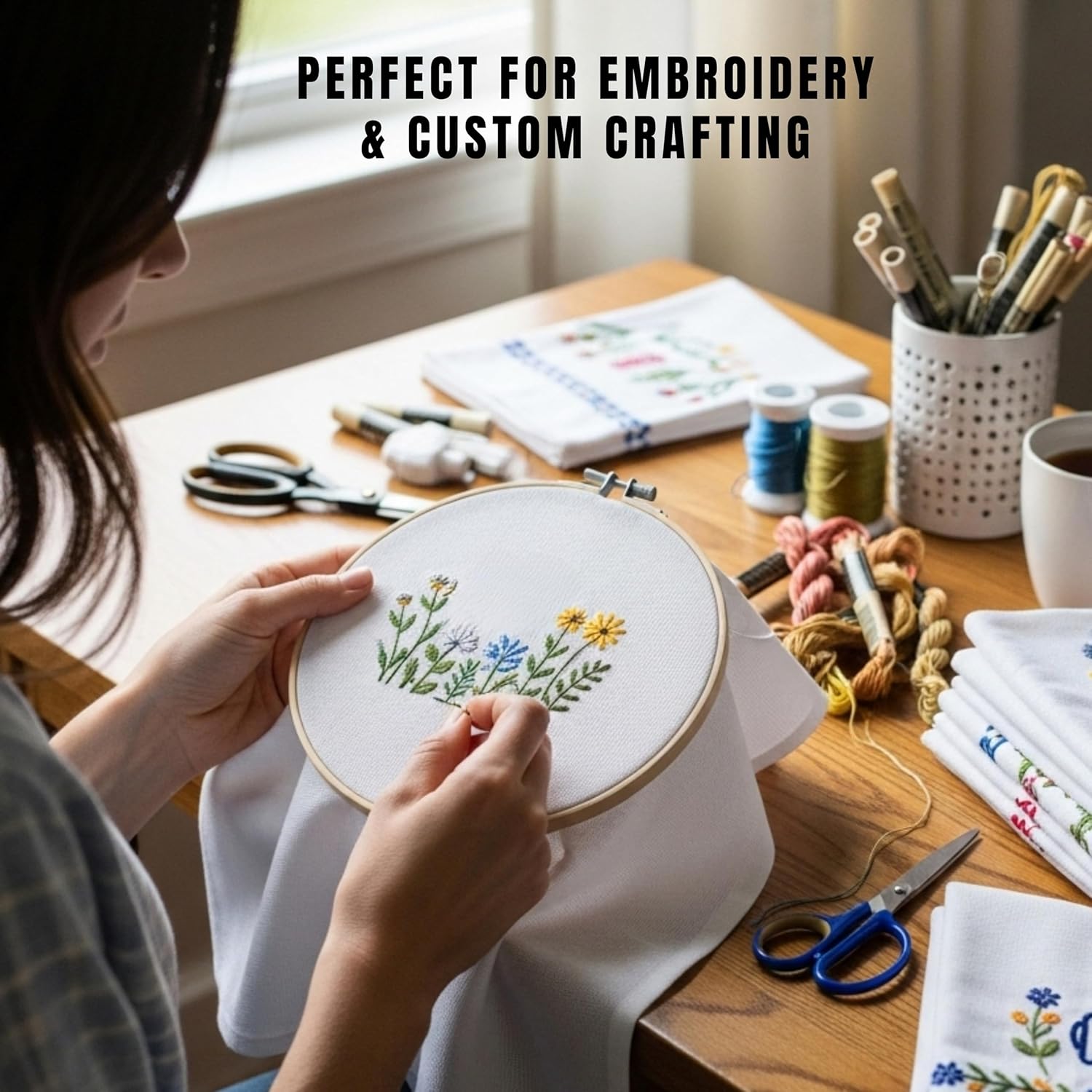 - ✅ Craft & Embroidery Friendly – Smooth, Sturdy Finish A favourite among Dyers! These towels are perfect for embroidery, heat transfer vinyl (HTV), screen printing, and creating personalized kitchen gifts. Popular with those searching for “blank flour sack towels for embroidery” and “flour sack towels for crafts.”