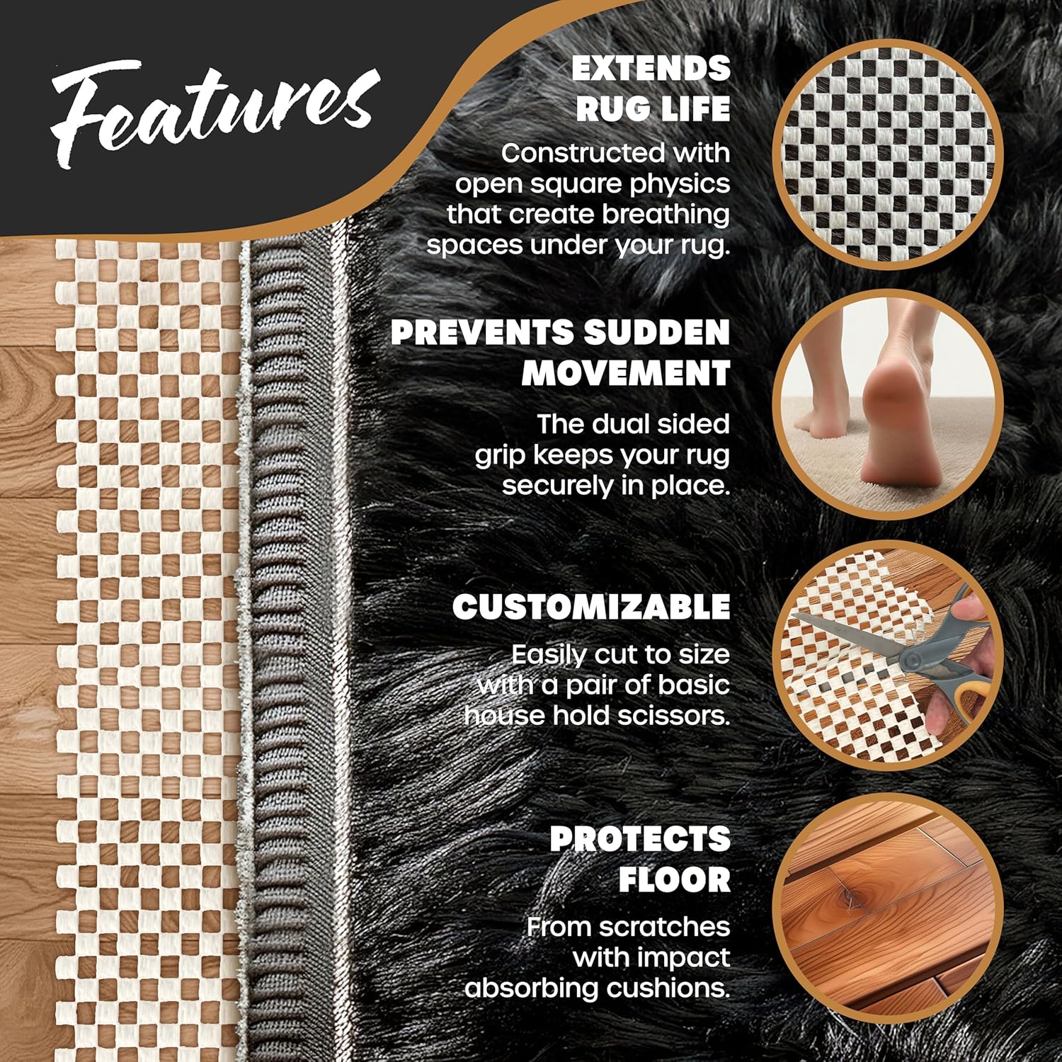 - Enhanced Floor Covering Defense: Optimize ventilation & stop moisture accumulation with our open-weave rug mat non slip protection. This carpet padding allows fibers to breathe, boosting the longevity of your carpet or rug. Address problems like uneven floors & curled edges with our effective non skid rug backing . The perfect rug gripper for hardwood floors , tile floors, slate floors, stone floors & more, the Nevlers Rug Stopper Non Slip Pads reduce tripping hazards to make your home safer.