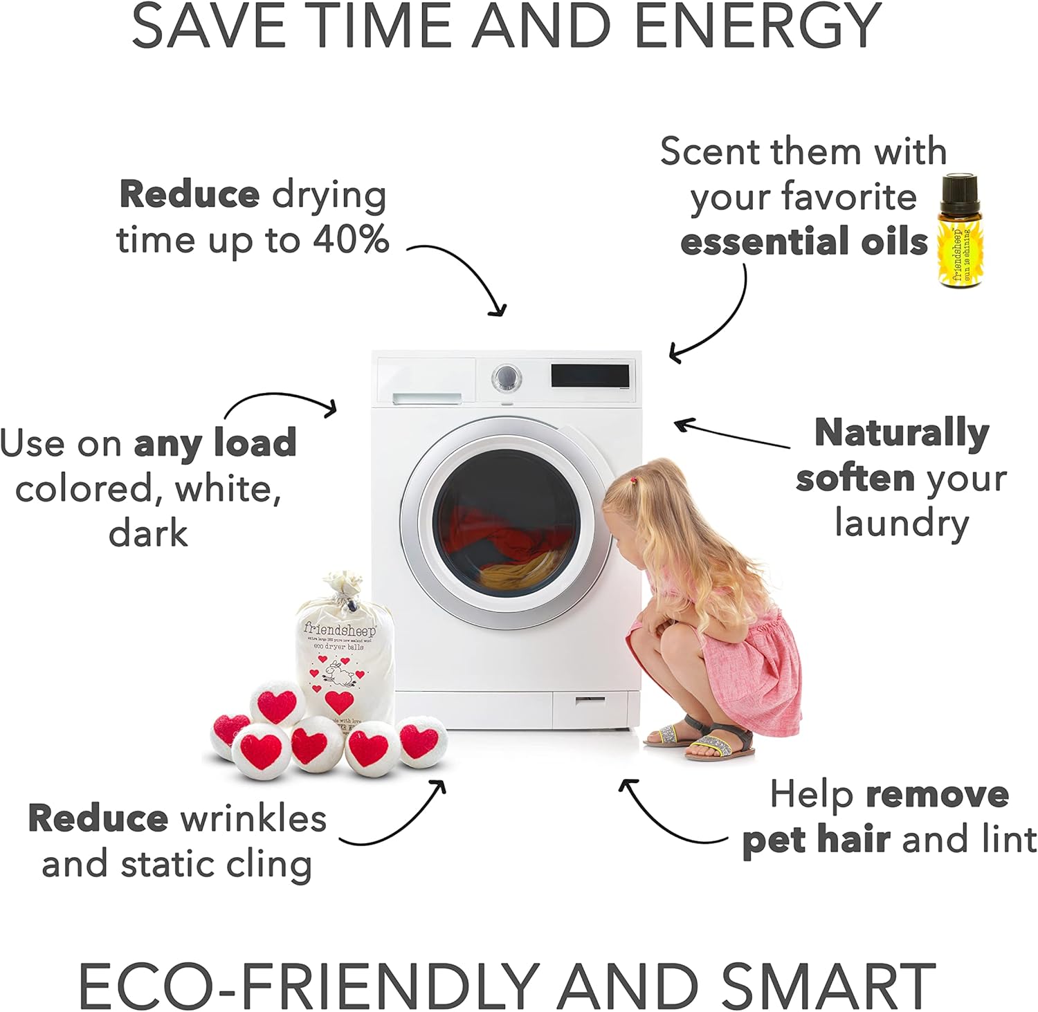 - ECO-FRIENDLY AND REUSABLE FOR 1000+ LOADS, replaces dryer sheets & liquid fabric softeners. Makes your laundry soft and fluffy, reduces wrinkles and static cling, and shortens drying time by up to 40% depending on load size. Your sheets and towels are fluffier, less balling and twisting. Makes you SAVE TIME, ENERGY, AND MONEY! All by keeping safe and healthy you, your family and the environment.