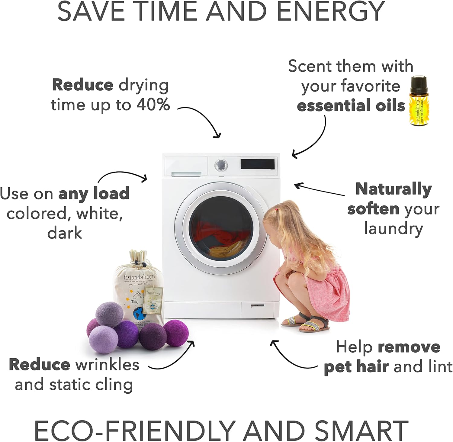 - ECO-FRIENDLY AND REUSABLE FOR 1000+ LOADS, replaces dryer sheets & liquid fabric softeners. Makes your laundry soft and fluffy, reduces wrinkles and static cling, and shortens drying time by up to 40% depending on load size. Your sheets and towels are fluffier, less balling and twisting. Makes you SAVE TIME, ENERGY, AND MONEY! All by keeping safe and healthy you, your family and the environment.