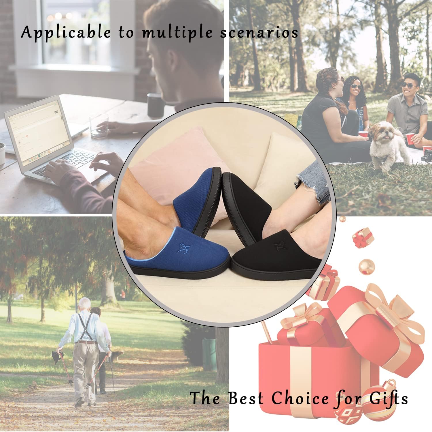 • Sole: The soft rubbery bottom is more than an inch thick.The upgrade rubber soles are softer, lighter, more elastic, The sole has strong grip and excellent anti-skid performance. Make sure that the tile or wood floor will not be scratched, and more importantly, your own comfort, happiness and safety