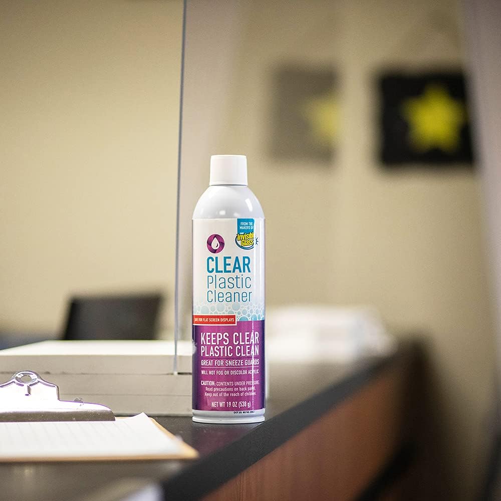 - PROTECTS AND CLEANS: Invisible Glass Clear Plastic Cleaner gives transparent plastics a streak-free, clear finish and a smooth, anti-static surface that repels dust from clear plastics on electronics, appliances, eyewear, cars, trucks, RVs, aircraft, and boats. Ideal for keeping sneeze guards and face shields clean and protected!