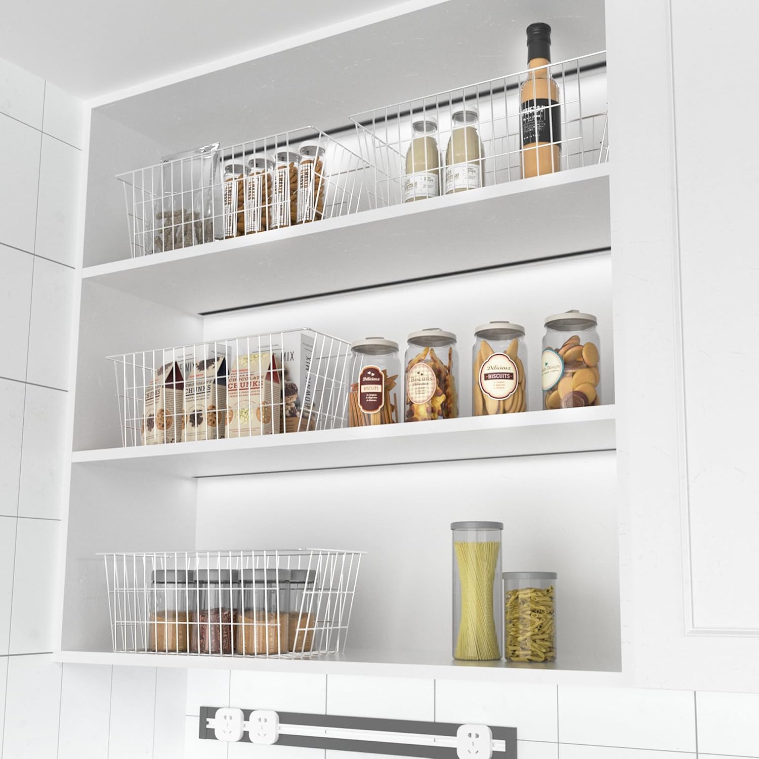 - Set of 6 Storage wire baskets.Approximate Dimensions:15.7in(L) x 9.5in(W) x 6.3in(H)Made of strong steel wire with a durable rust-resistant Plating finished; Easy Care - Wipe clean with damp cloth.
