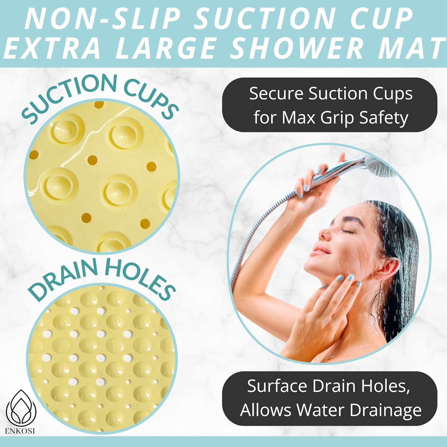 - Great For The Elderly, The Babies & Young Children: Nonslip & generously sized, the Enkosi bath mat ensures the safe bathing & showering of your baby, toddler, as well as your elderly parents or grandparents.