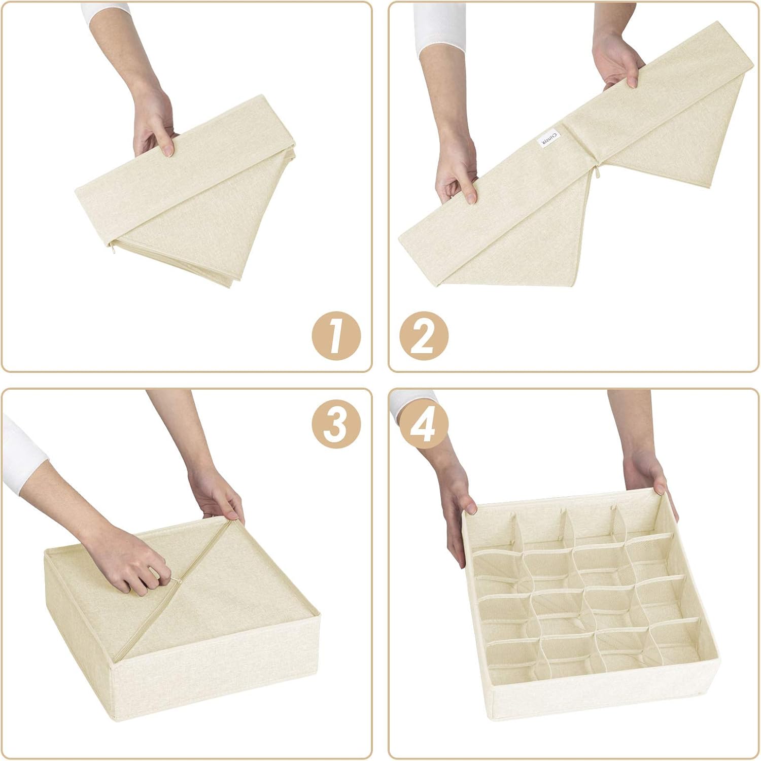 - 【DECENT SIZE & UNIQUE DESIGN】 You will receive 3 set cabinet organizers, each mesures 12.5"x12.5"x4" (32x32x10cm). Two of the boxes have 24 medium cells, one of them has 16 large cells for storing winter/athletic socks, small ornaments etc. Color: Beige