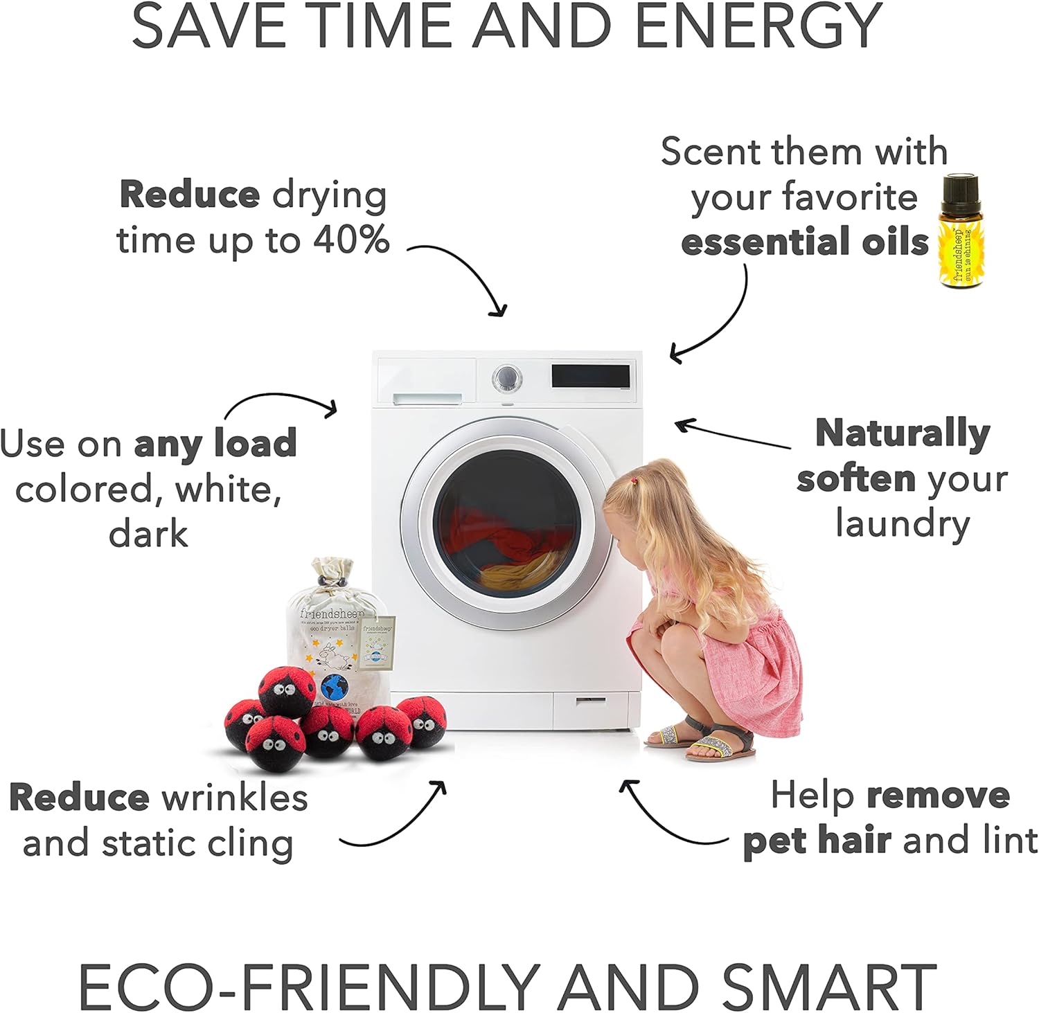 - ECO-FRIENDLY AND REUSABLE FOR 1000+ LOADS, replaces dryer sheets & liquid fabric softeners. Makes your laundry soft and fluffy, reduces wrinkles and static cling, and shortens drying time by up to 40% depending on load size. Your sheets and towels are fluffier, less balling and twisting. Makes you SAVE TIME, ENERGY, AND MONEY! All by keeping safe and healthy you, your family and the environment.