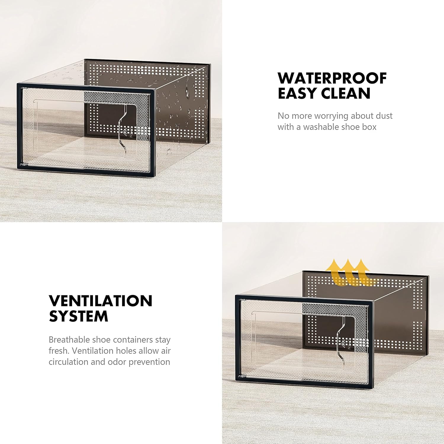 - Sturdy yet Breathable: Made of sturdy and premium plastic. Large rear ventilation holes ensure air circulation and odor prevention, breathable shoe containers stay fresh. Easy daily care – clean with mild soap and water.