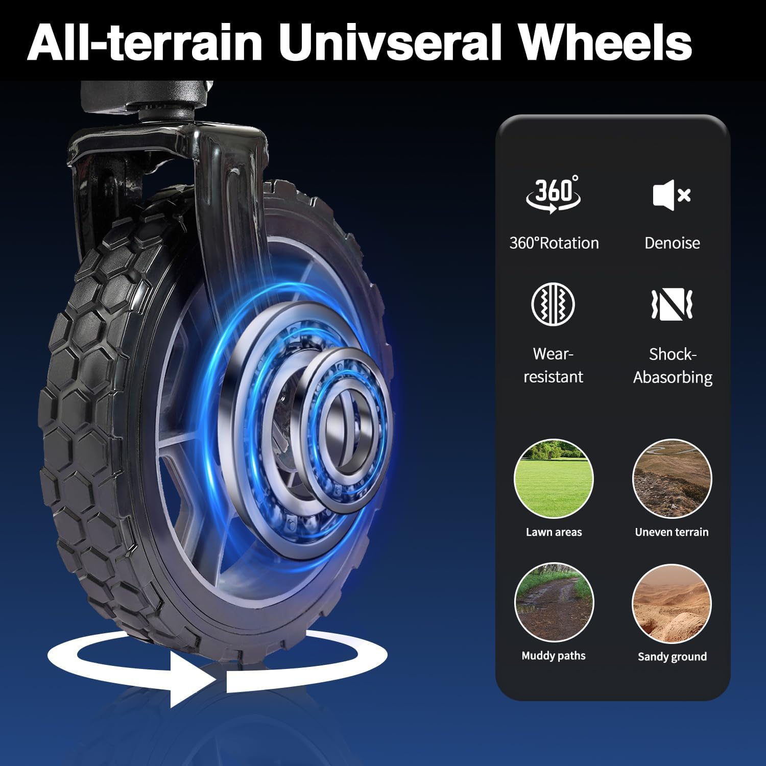 - All-Terrain Versatility: Outfitted with four all-terrain wheels, including two 360° swiveling front wheels, for easy movement on any surface. The adjustable handle offers smooth control even when loaded, making this folding wagon perfect for shopping, gardening, picnics, camping, or sports events, whether you’re exploring with a wonderfold wagon