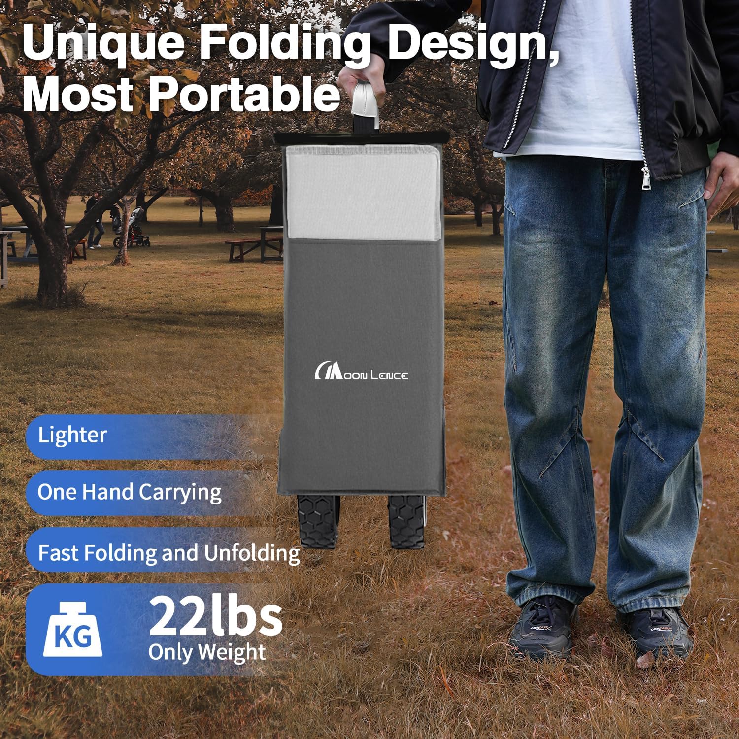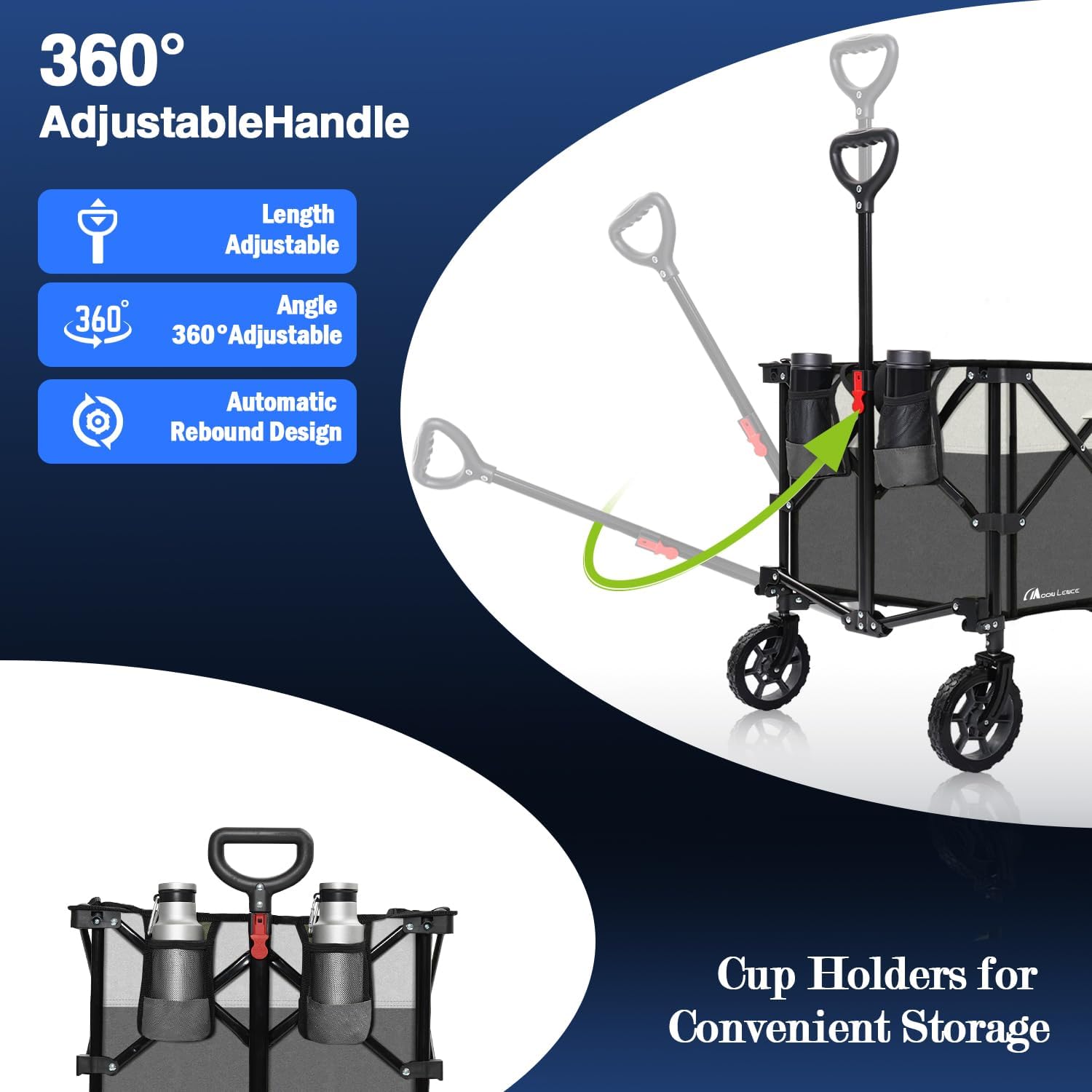Moon Lence Collapsible Folding Wagon Cart Heavy Duty Folding Garden Portable Hand Cart with All-Terrain Beach Wheels, Adjustable Handle & Drink Holders (Grey & Ivory)