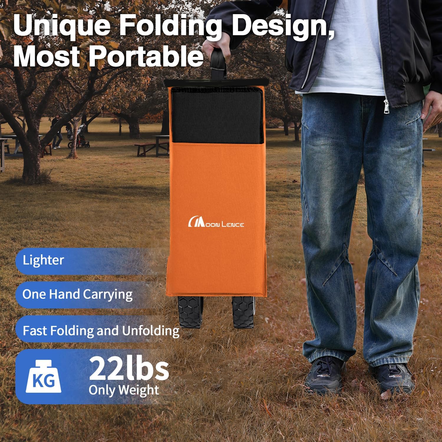 Moon Lence Collapsible Folding Wagon Cart Heavy Duty Folding Garden Portable Hand Cart with All-Terrain Beach Wheels, Adjustable Handle & Drink Holders (Orange & Ivory)