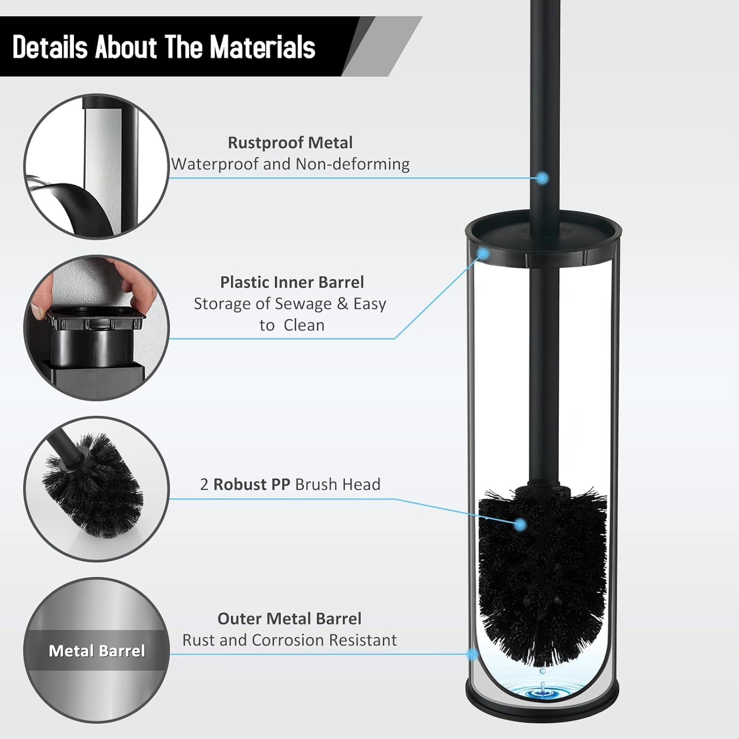 - Two black brush heads:Black bristles are more resistant to dirt than the white bristles,buy one toilet brush you can get two brush heads ,it convenient for your replacement and prolong service life.