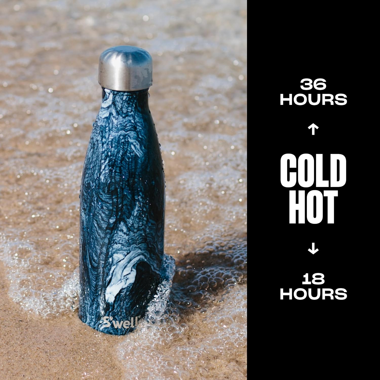 - TRIPLE-LAYERED INSULATION: S’well 17oz Bottle with stainless steel. Triple-layered, vacuum-insulated construction. Exclusive Therma-S’well Technology keeps beverages cold for 36 hours and hot for 18. Sleek and beautifully crafted. Hand-wash only.