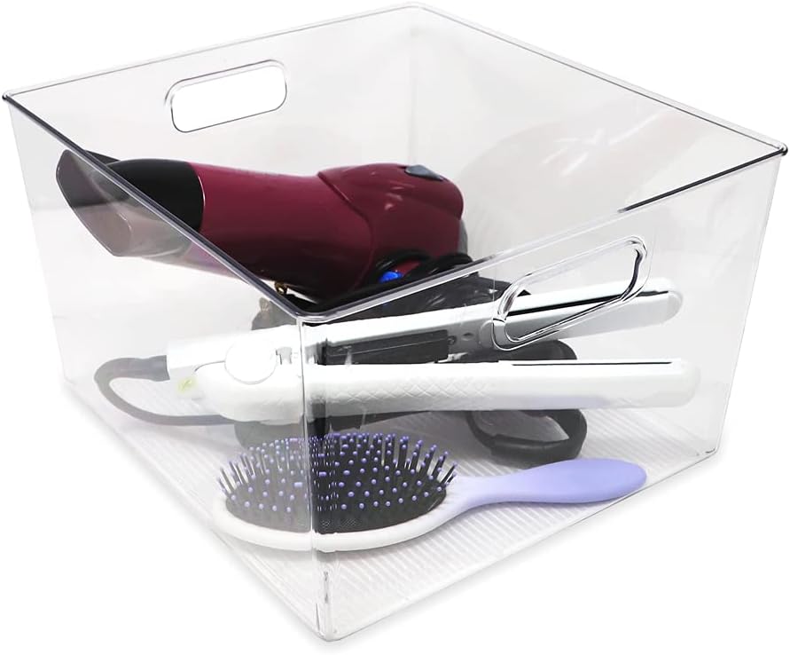 - MULTI-USE: Maximize your space without sacrificing style with our home organizer set. Imagine being able to organize your kitchen with space-saving clear bins - store large snacks, drinks, party supplies, and pet food. Declutter the house! Group shoes, heels, purses, and clothing in the bedroom closet, sheets and towels in the hall, cleaning products and detergents in the laundry room, games in the toy room, and hair and beauty supplies in the bathroom. Also great for office supplies at work.