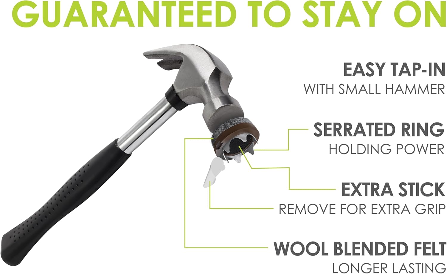 - Quick & easy tap on installation – Includes 16 x 1 inch round felt chair feet pads that install in seconds with the tap of a hammer, simply clean the bottom of furniture leg, peel off adhesive backing from glide, position on furniture and then tap on premium felt furniture pads. Not for use on metal furniture legs or furniture legs that can't be hammared into - please see peal & stick GorillaFelt furniture pad options.