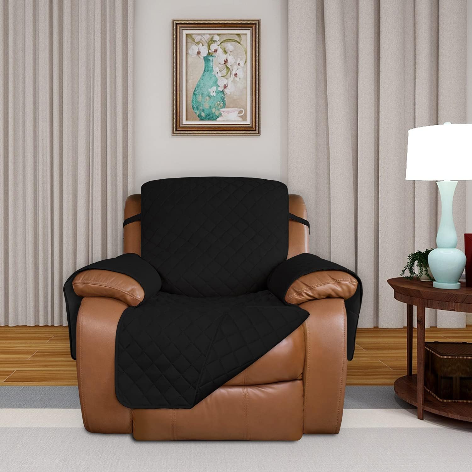 PureFit Reversible Quilted Oversized Recliner Sofa Cover, Water Resistant Furniture Protector, Washable Couch Cover with Elastic Straps for Kids, Pets (Large, Black/Black)