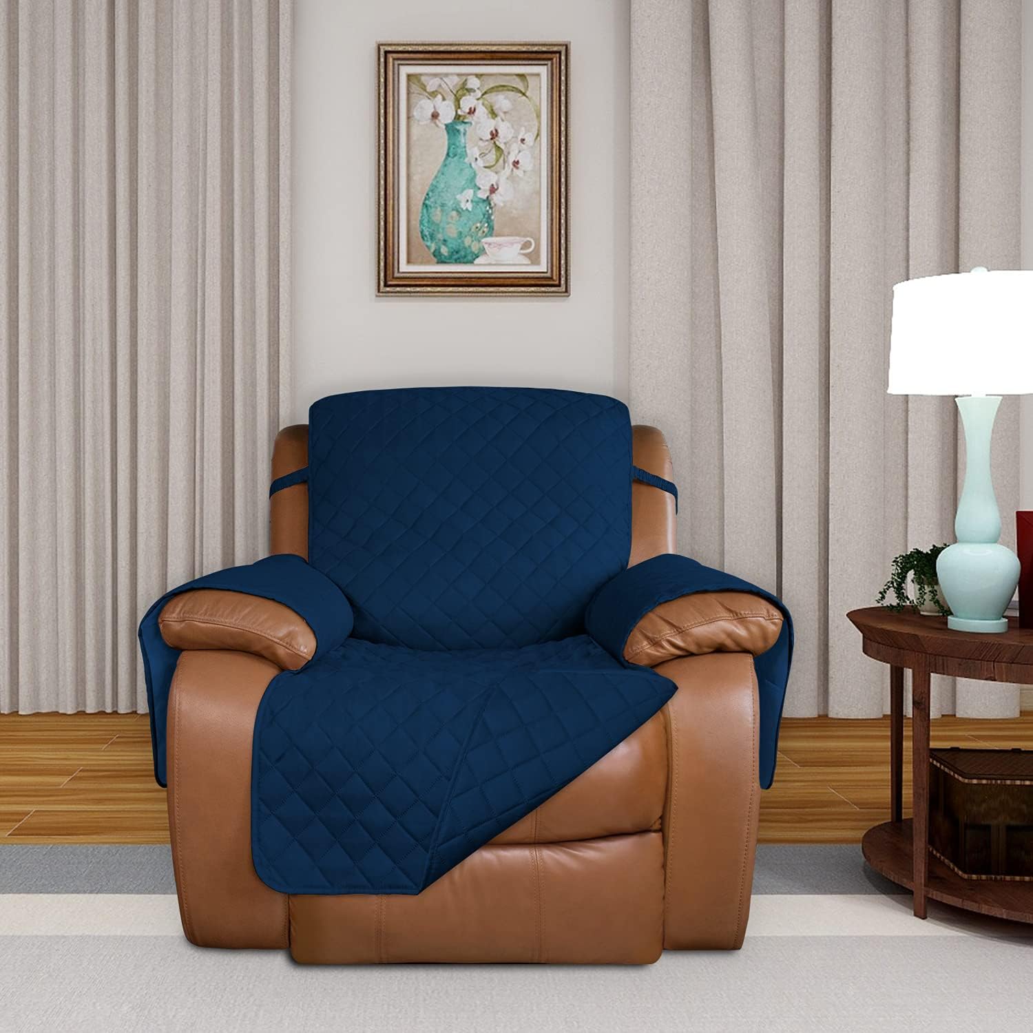 PureFit Reversible Quilted Oversized Recliner Sofa Cover, Water Resistant Furniture Protector, Washable Couch Cover with Elastic Straps for Kids, Pets (Large, Classic Navy/Navy)